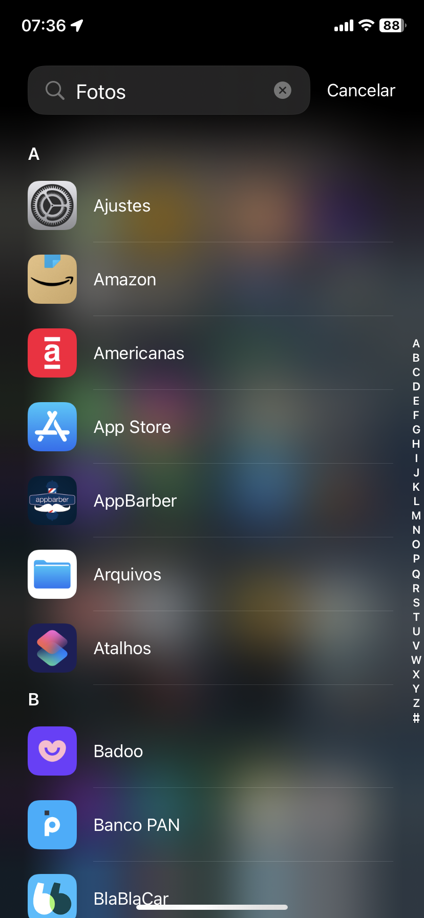 Problema na pesquisa da biblioteca de apps do iPhone
