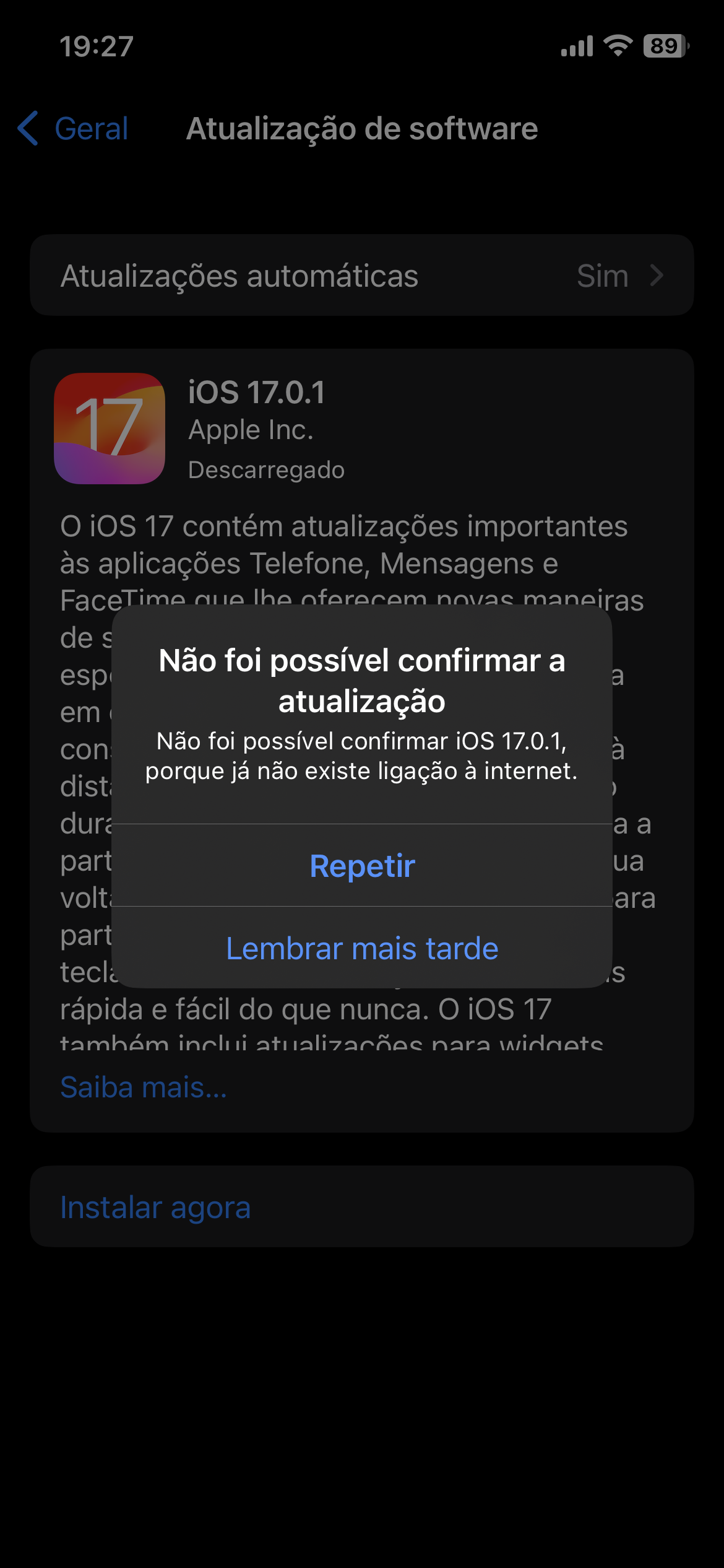 Não foi possível confirmar iOS 17.0.1, porque já não existe ligação à internet.