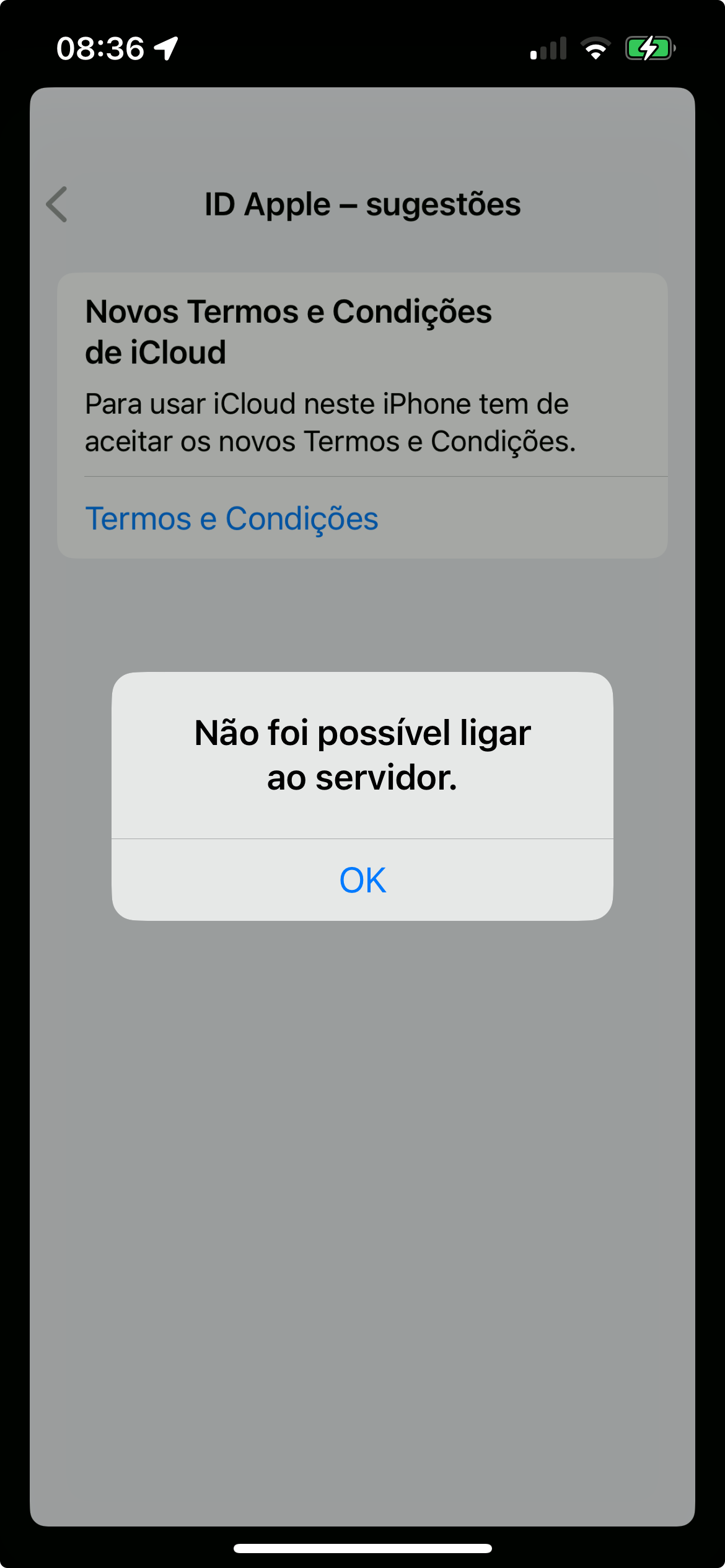 ID Apple "Não foi possível ligar ao servidor"