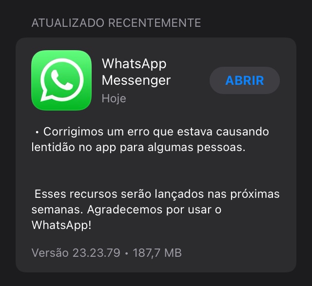 Após a atualização 17.1 do iOS meu iPhone 11 ficou péssimo, travando muito, principalmente no aplicativo WhatsApp. Hoje surgiu uma nova atualização do iOS 17.1.1 achei que iria resolver ou pelo menos amenizar, porém, o problema persiste.