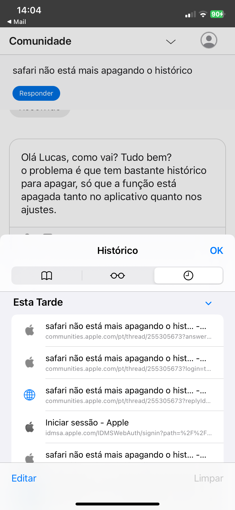 safari não está mais apagando o histórico