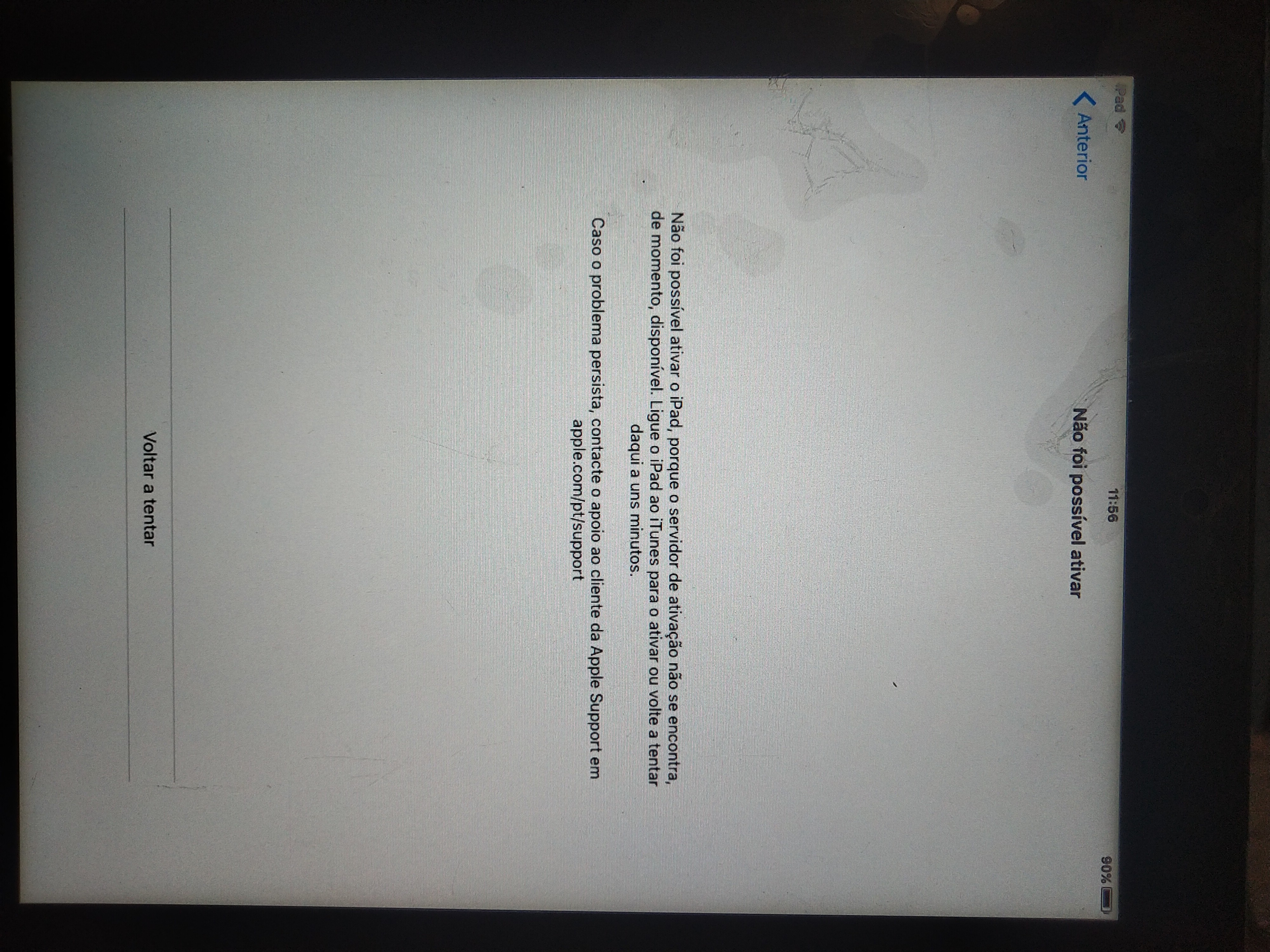Nao consigo ativar meu iPad, segue a mensagem que aparece na tela.