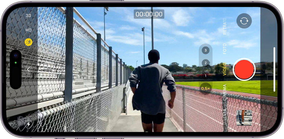 Dica: use controles rápidos para ajustar a resolução e a taxa de quadros de vídeo enquanto estiver gravando. Consulte Use controles rápidos para alterar a resolução e a taxa de quadros de vídeo.