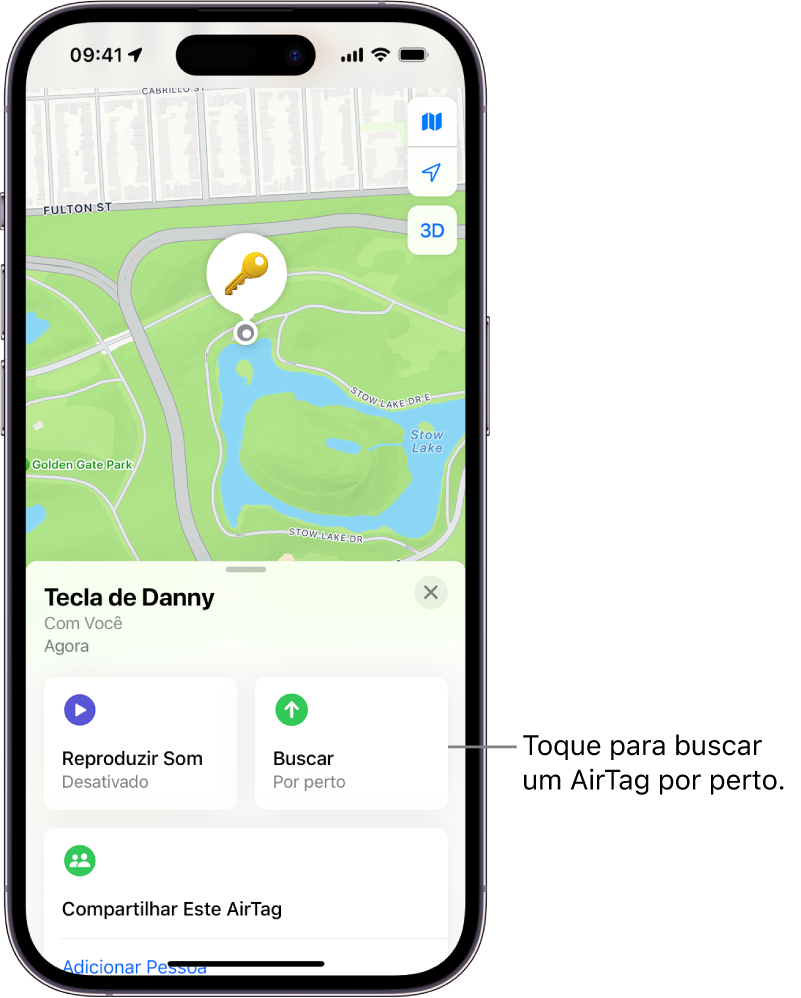 para localizar um AirTag ou item de terceiros perdido que você tenha registrado no seu ID Apple. Caso tenha um modelo de iPhone 15 ou iPhone 15 Pro, você também pode buscar a localização exata do item.