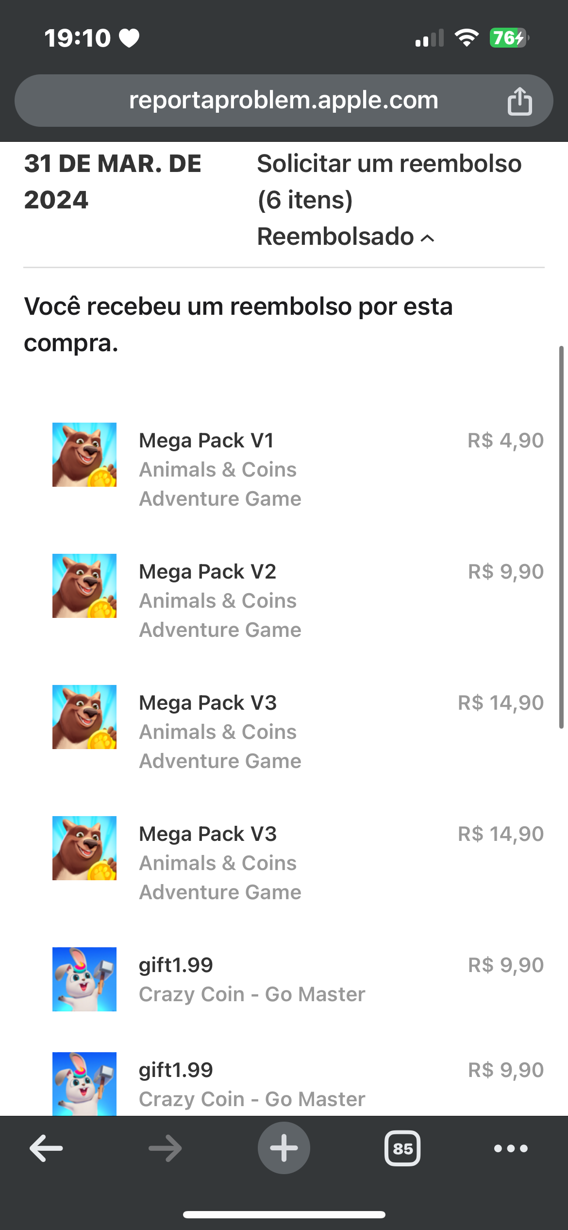 Pedi reembolso dia 31/03 teve atualização que havia sido reembolsado porém não foi