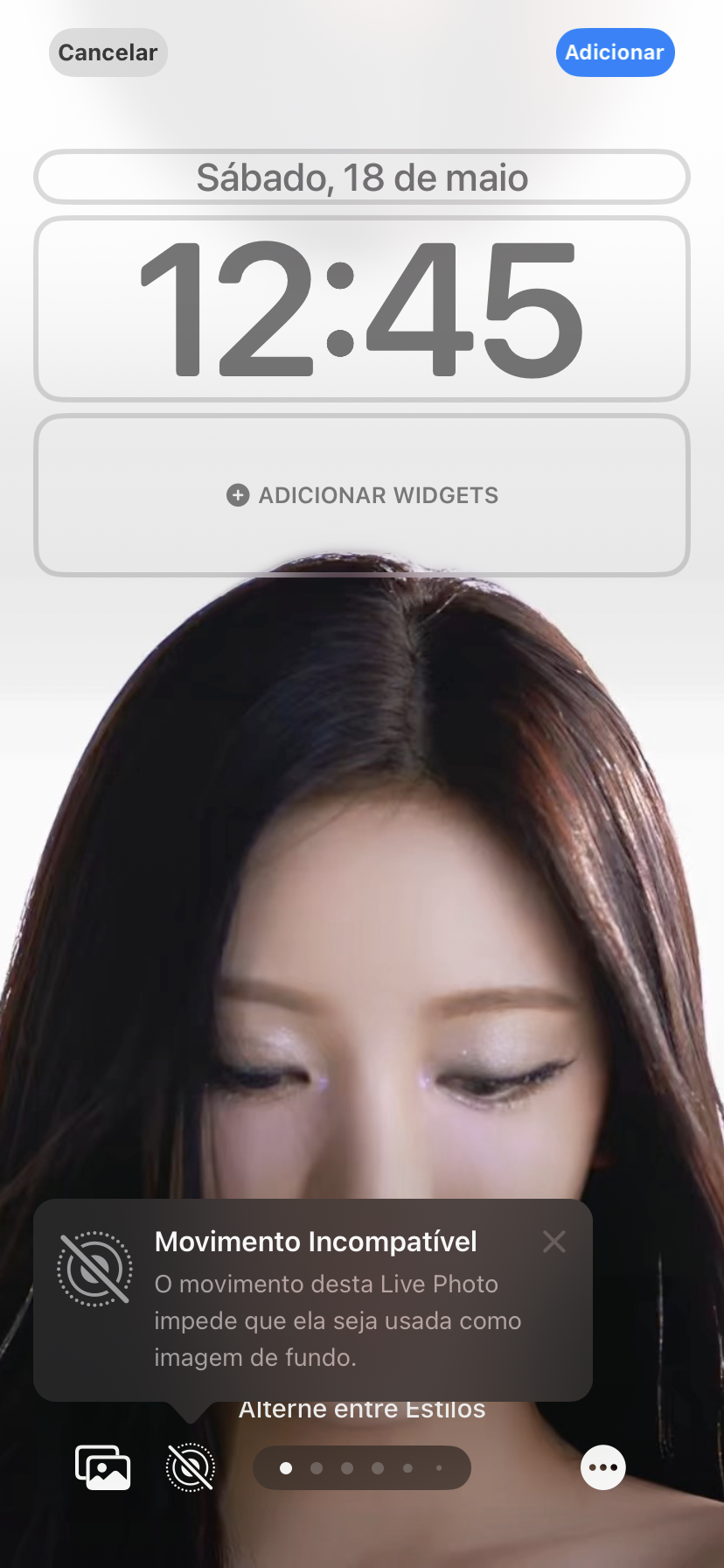 Saiu uma trend no tiktok de colocar uma live photo de um grupo de kpop no wallpaper, eu salvei o video ja convertido para live photo, porem aparece a mensagem "O movimento desta Live Photo impede que ela seja usada como imagem de fundo.", tentei com outro e deu no mesmo. O meu ios é o 17.1.1, iphone 11