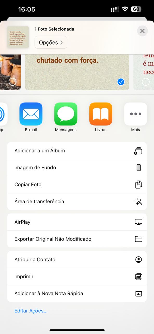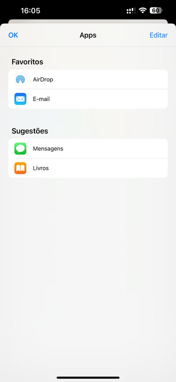 Já estou enlouquecendo! A maioria das opções de apps pra compartilhar desapareceram. Pds (como comprovantes de pix, por exemplo), alguns tenho que mandar por email (mail) porque não consigo compartilhar pelo WhatsApp, mandar pra algum drive nem nada parecido… não sei mais o que fazer! Já tentei até restaurar o iPhone, nada resolveu.