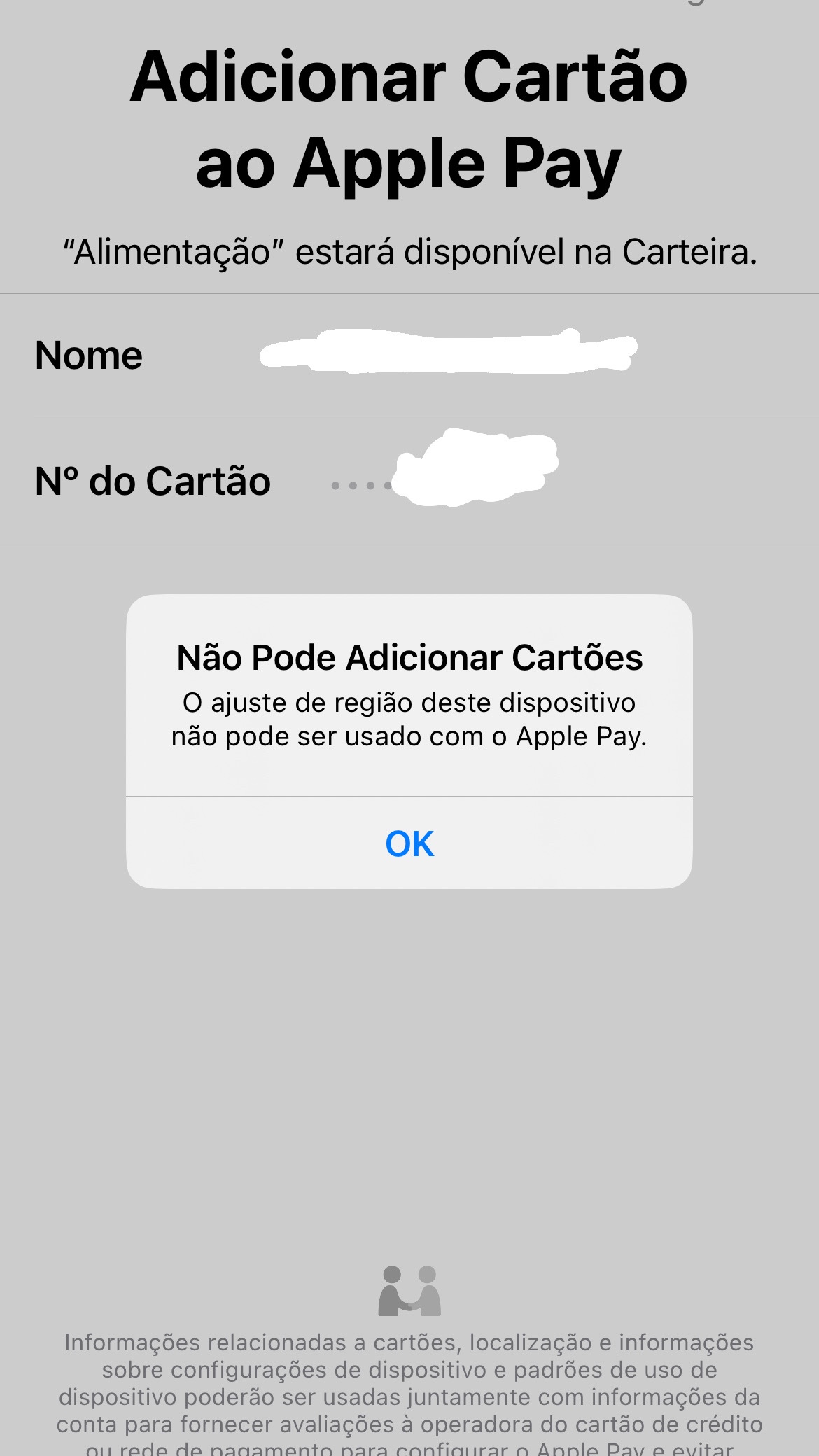 Estou tentando adicionar meu cartão Pluxee ao Apple wallet porém quando tento adicionar o cartão aparece a mensagem “o ajuste de região deste dispositivo não pode ser usado com o Apple Pay”