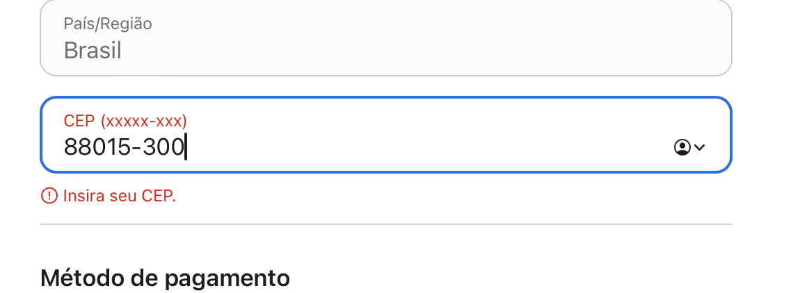 Estou com dificuldade para adicionar uma forma de pagamento para estar usando o App Store, o CEP de onde eu moro fica dando invalido ou incorreto mesmo estando certo, alguém poderia me direcionar?