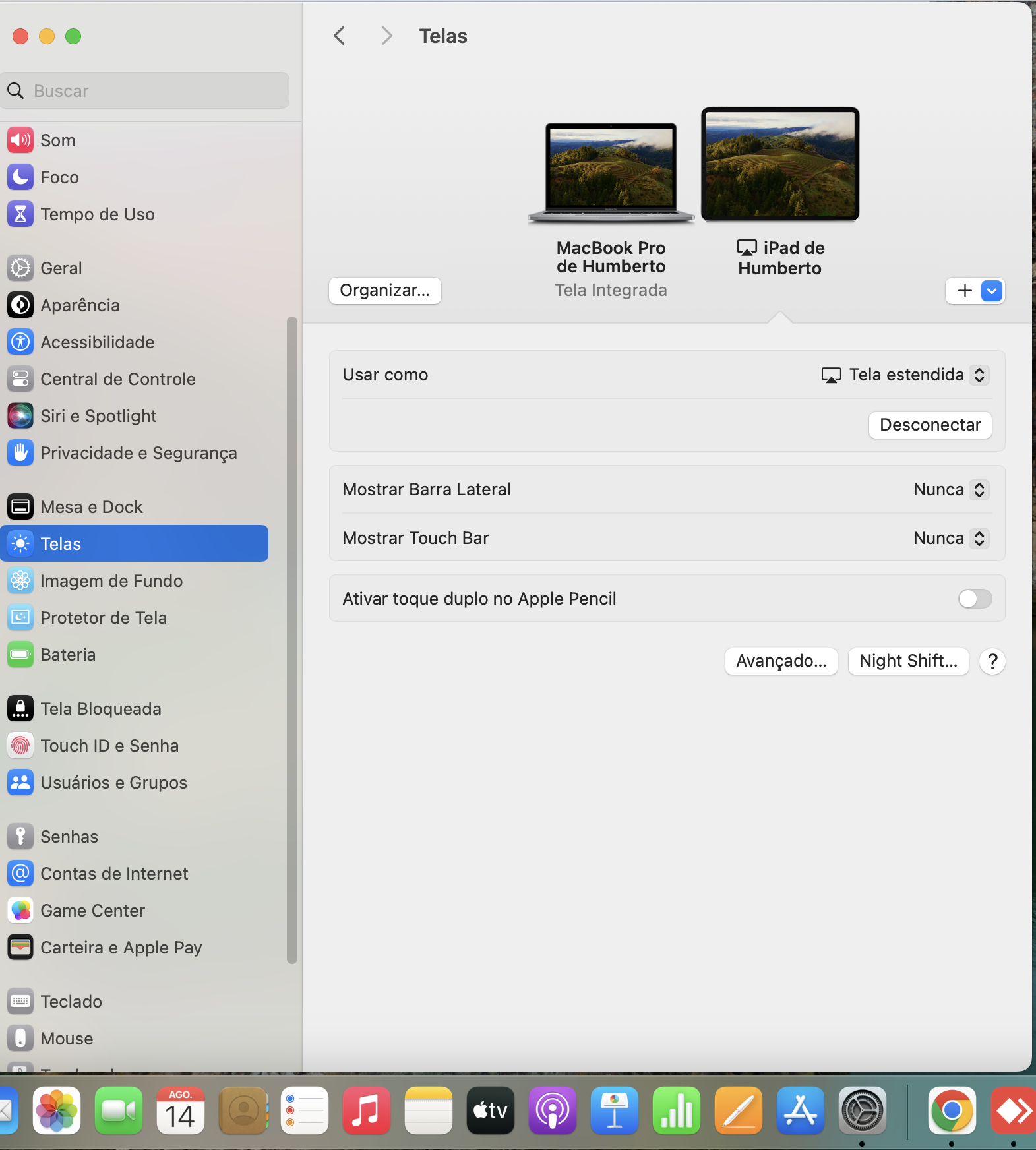 Meu MacBook é atualizado com a última atualização disponível. Quando vou utilizar meu iPad como segunda tela, gostaria de utilizá-lo na posição vertical para leitura de documentos. Meu MacBook é um Pro m2 macOS Sonoma 14.5 e meu iPad é de 10 Geração OS 17.6.1
