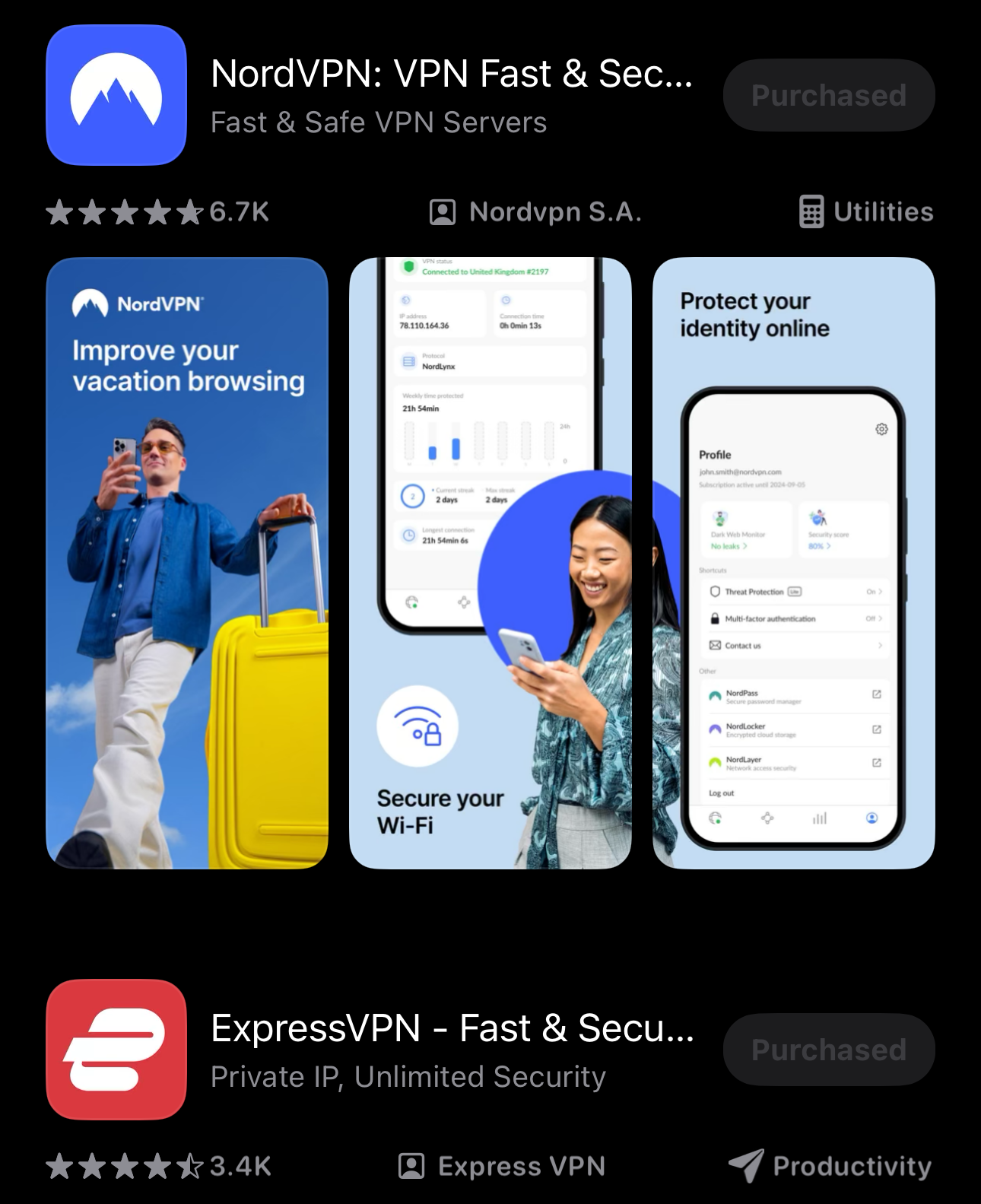 Estou a tentar baixar um aplicativo de VPN no meu iPhone e não consigo. Somente os Apps de VPN que não baixam e ficam como a imagem: