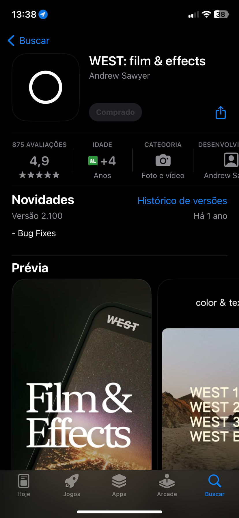 Segue o print com o nome do App e também como ele fica ao clicar em Obter.