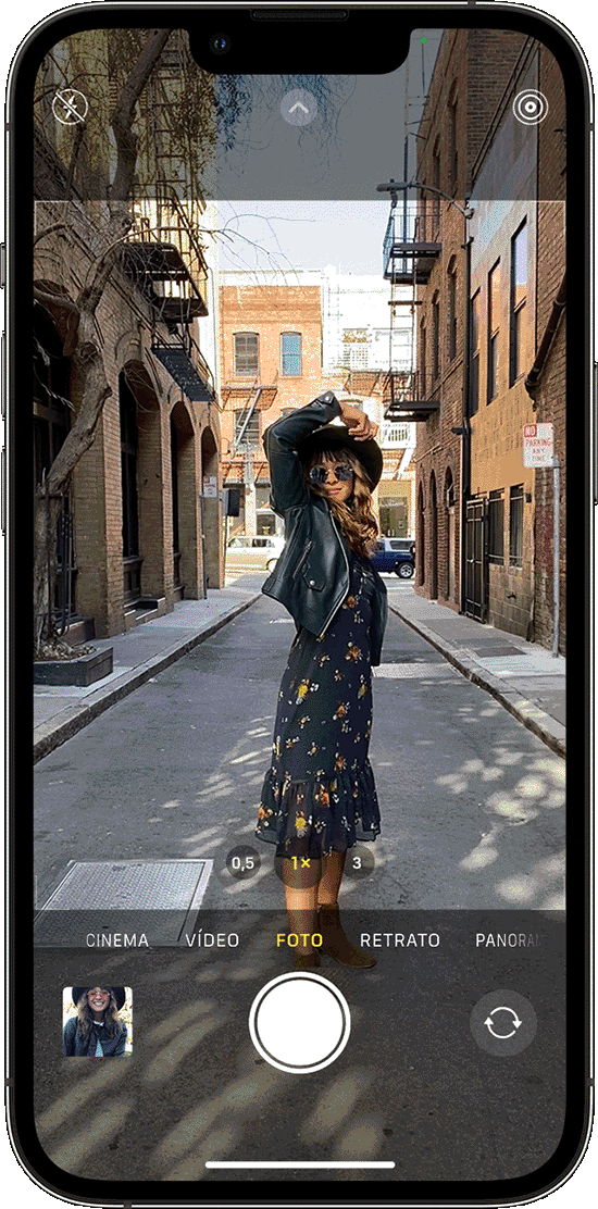 Ao abrir o app Câmera, você vê o modo Foto padrão. Toque no botão Obturador