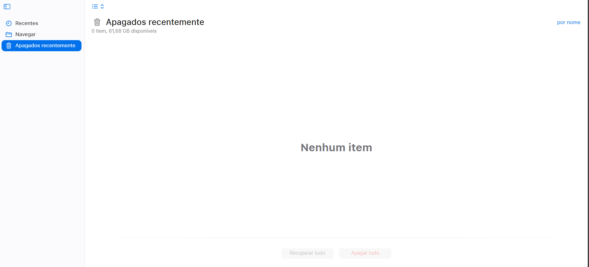 1. No iCloud Drive no iCloud.com, clique em Apagados recentemente na barra lateral.