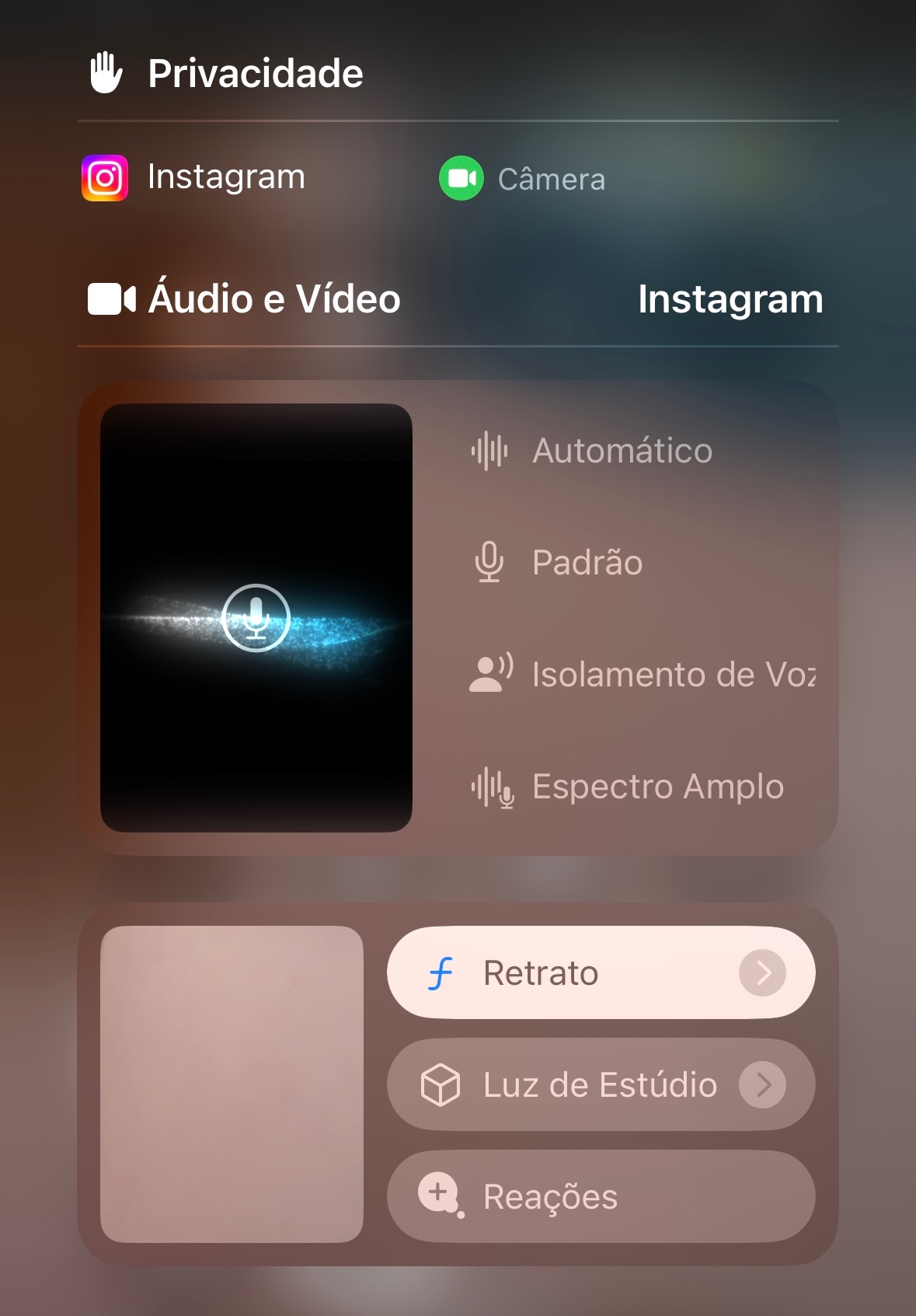 Tive esse problema também! Eu vi que agora com a câmera do Instagram aberta, você abaixa a central de controle e ele fica bem encima. Clicando la tem todas as opções de configuração da câmera pelo aplicativo