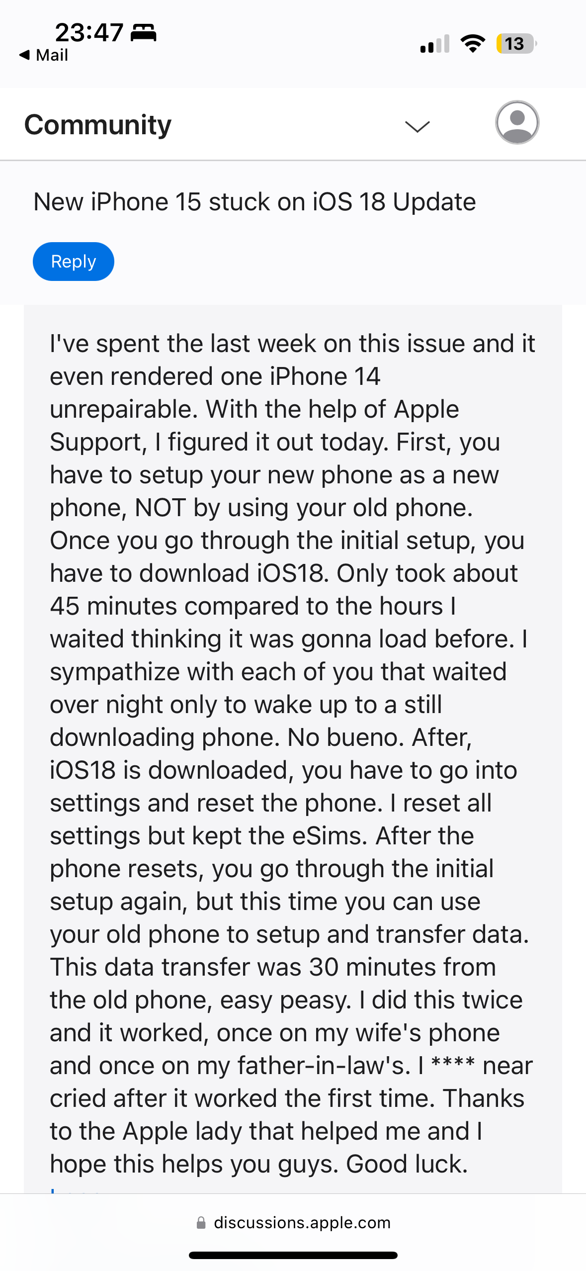 Tente atualizar o dispositivo novamente usando a mesma rede. Se uma dessas mensagens ainda for exibida, atualize o dispositivo usando outra rede ou o computador: