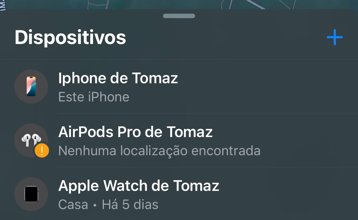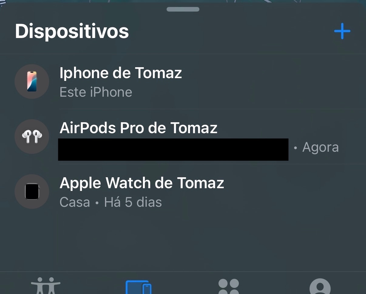 O segundo problema é em relação ao Buscar. Quando a opção buscar esta desligada, mostra meus AirPods no mapa, porém somente a última conexão.