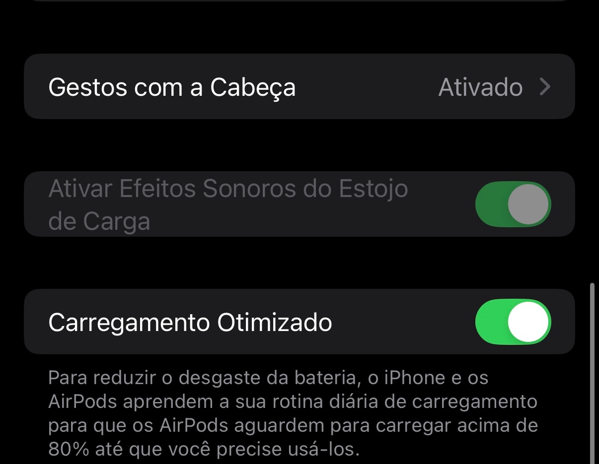 Primeiro problema é a opção de “Ativar efeitos sonoros do estojo de Recarga”, que se encontra desabilitada para alterar entre ligado ou desligado.