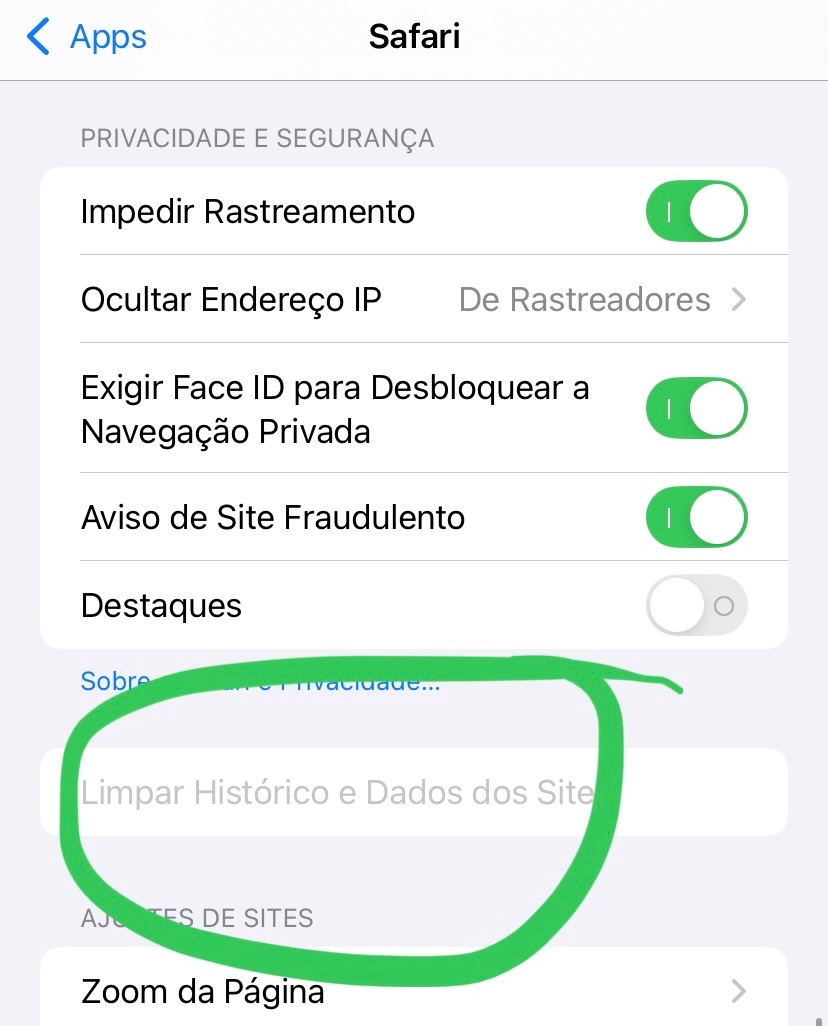 meu safari está ocupando 2GB de memória e eu não consigo apagar o histórico, o botão não permite que eu clique