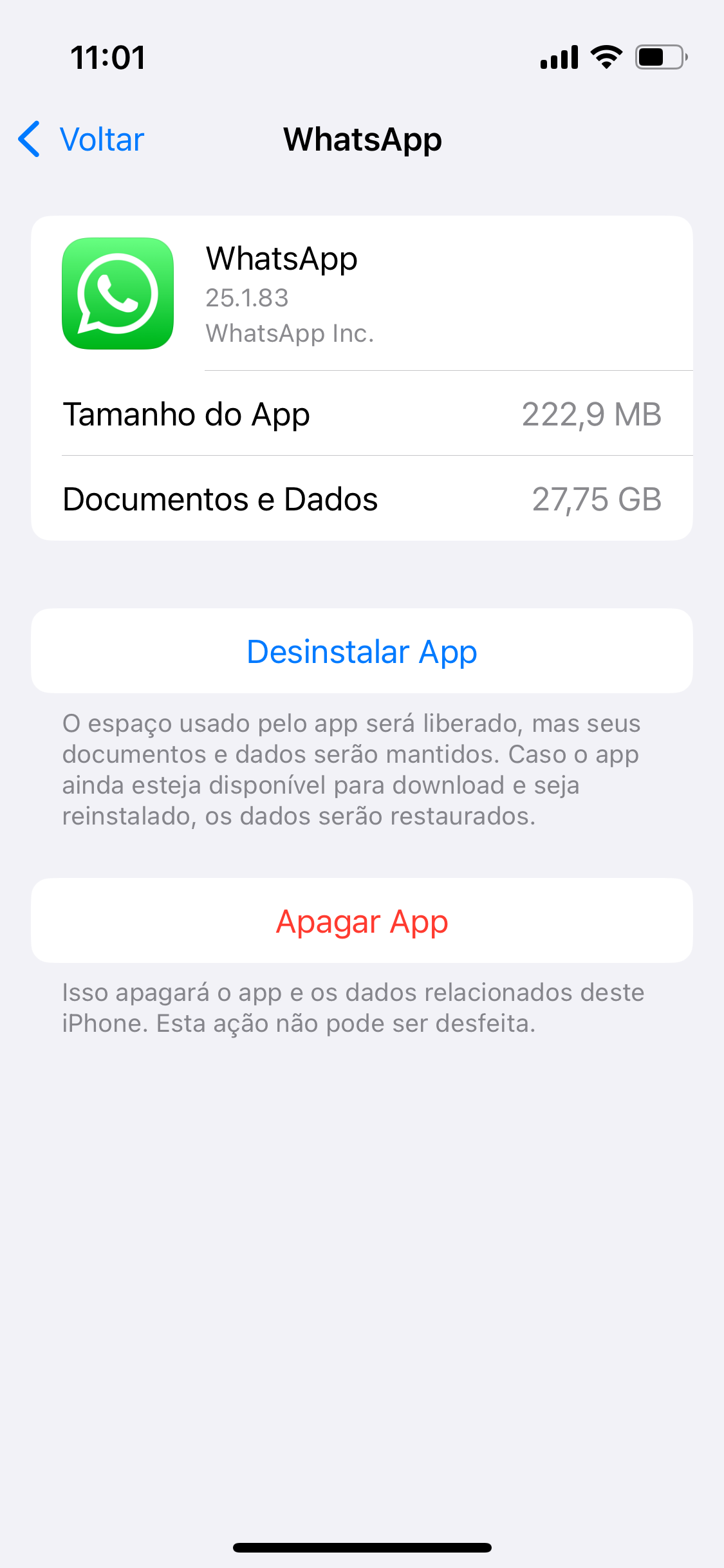 Por que o WhatsApp está ocupando mais espaço do que o indicado?