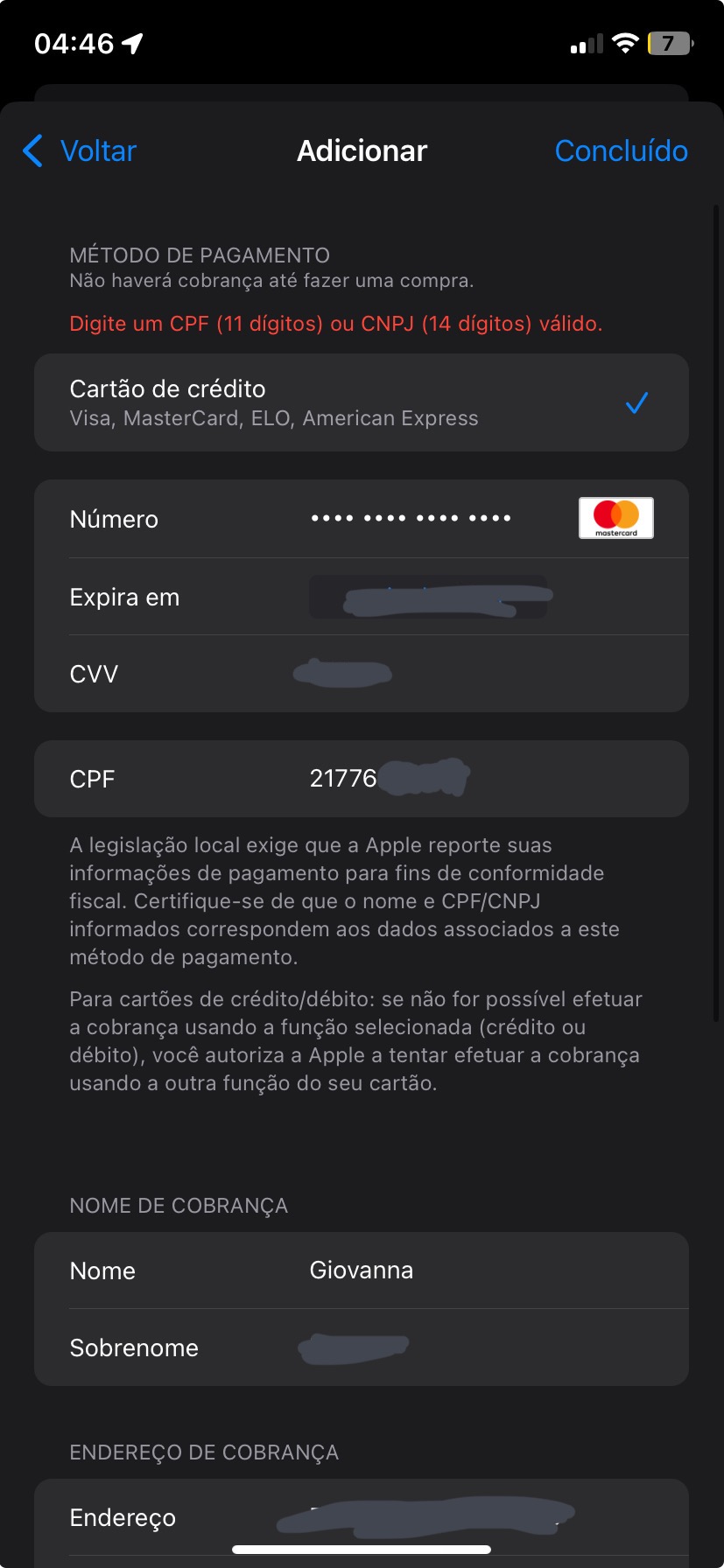 Estou colocando meu CPF na aba de pagamento e mesmo assim não está indo! Não sei oque fazer