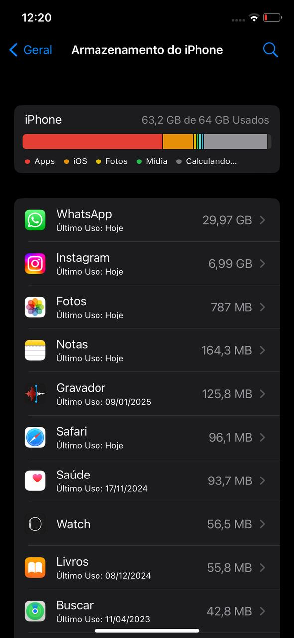 E aconselho liberar espaço interno do iOS rápido pois se ele encher ele ira travar, reiniciar e ficar no logo da e com isso ira precisar restaurar perdendo tudo no aparelho e se recuperar o que esta salvo no iCloud