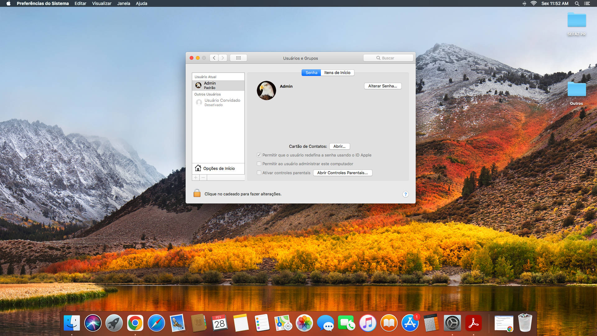 Obs2.: Há apenas um Administrador no meu Mac.