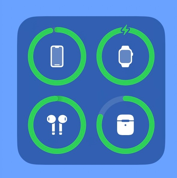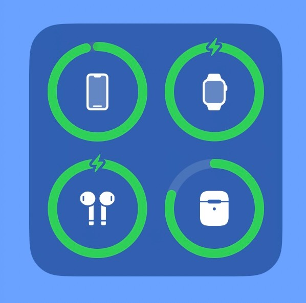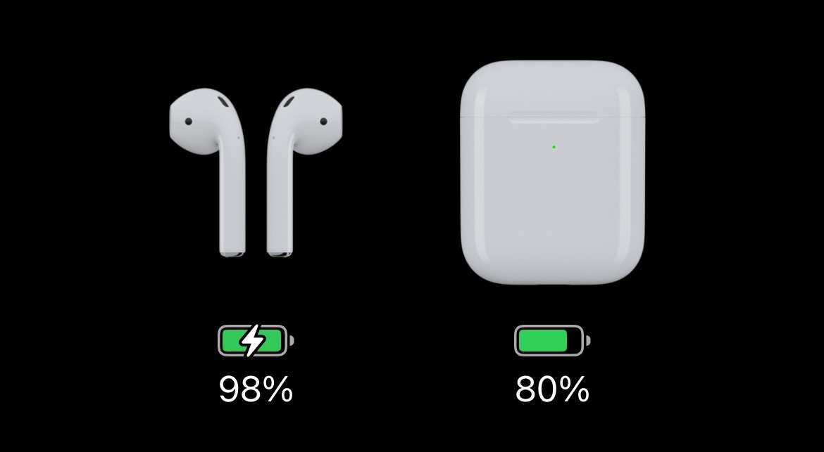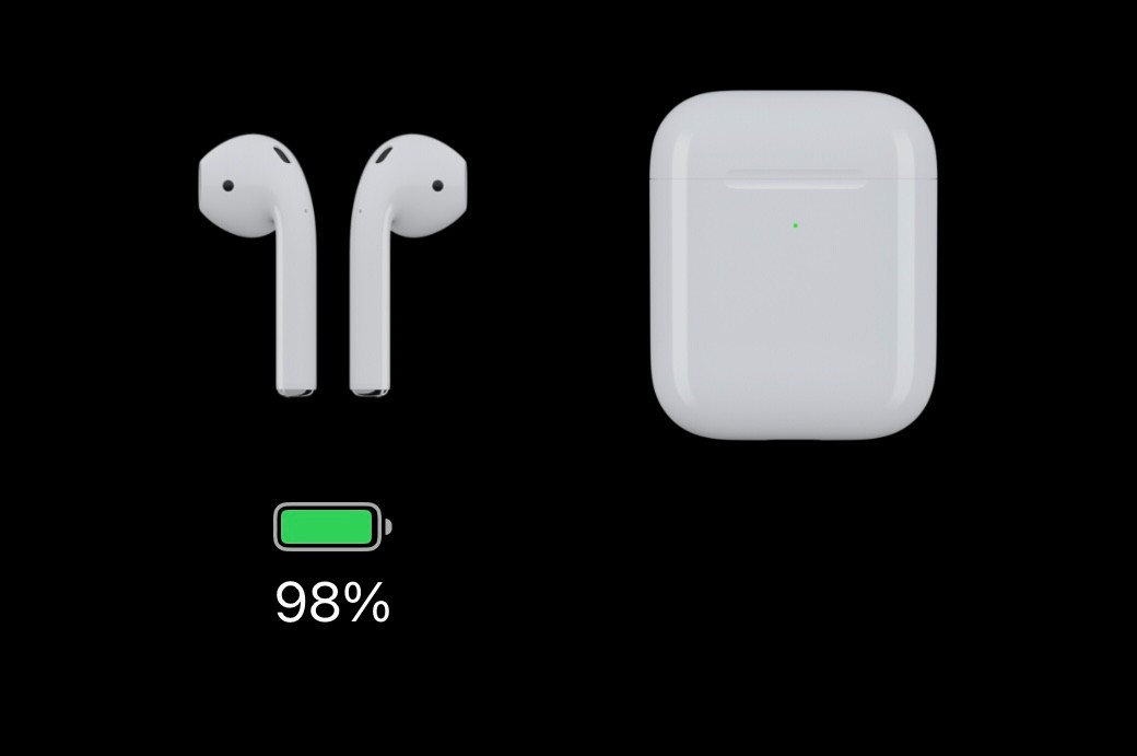 O estojo mostra estar carregado assim como cada Airpods.