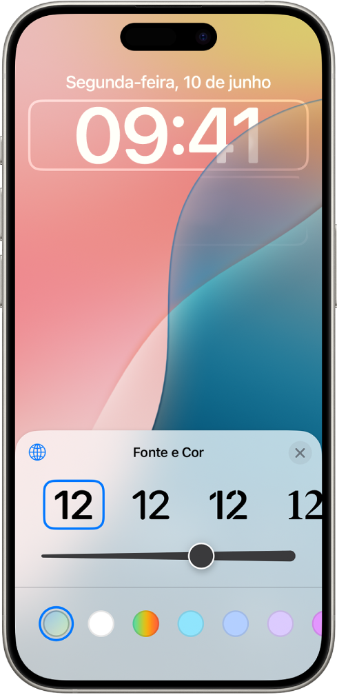Você pode alterar a fonte e a cor do relógio na Tela Bloqueada.