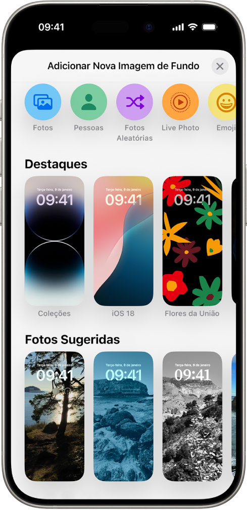 Para personalizar a Tela Bloqueada, você pode escolher uma imagem de fundo, mostrar uma foto favorita, alterar a fonte das horas, adicionar widgets e muito mais.