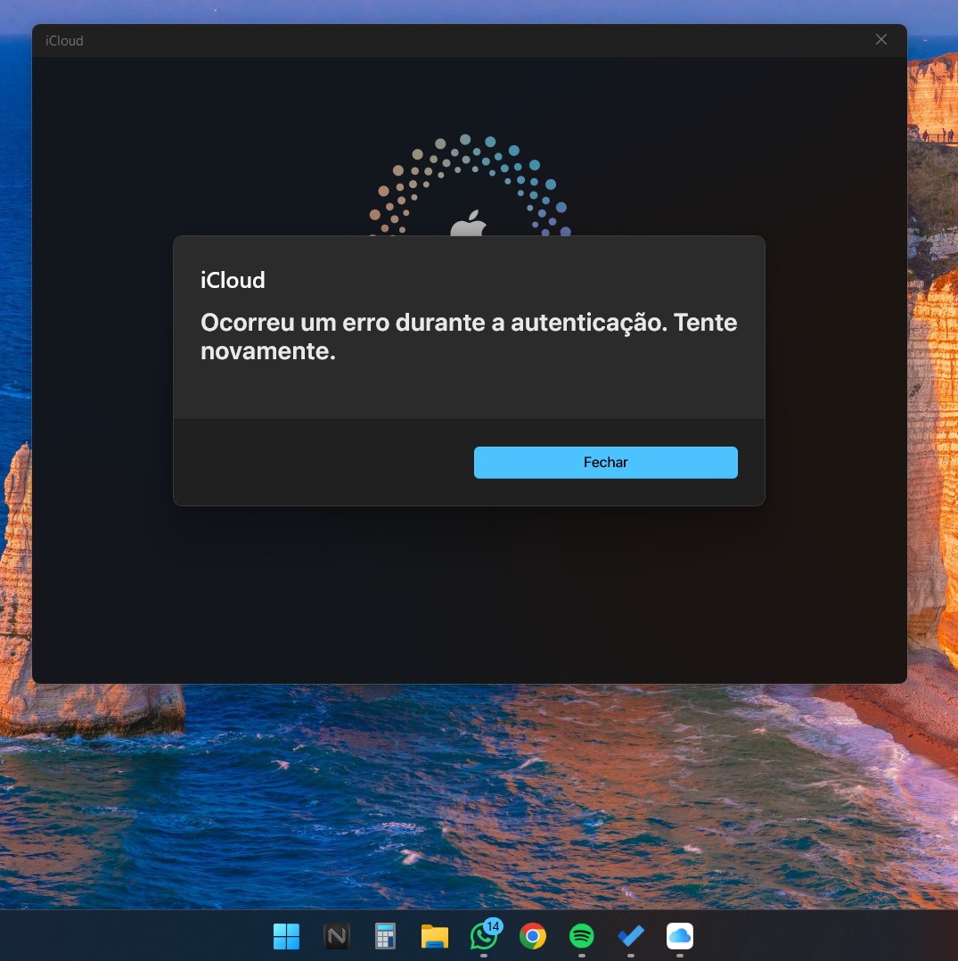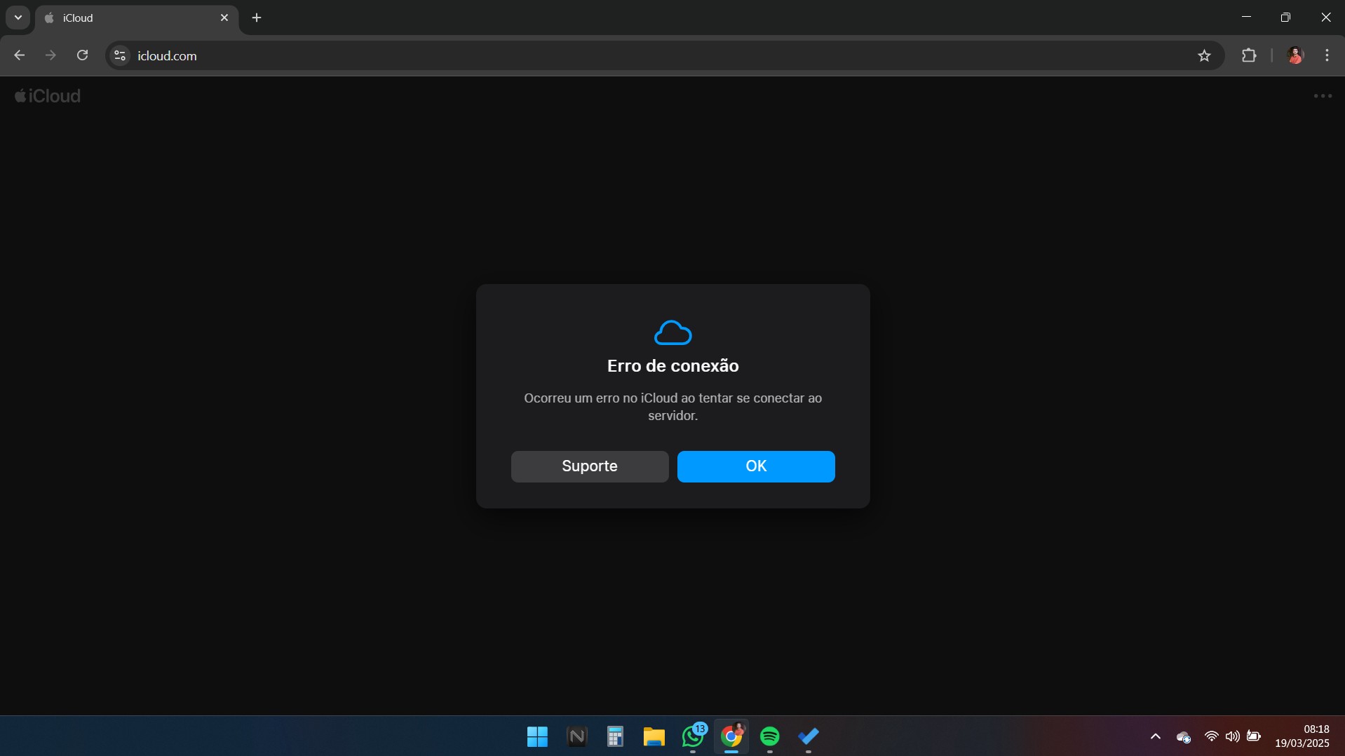 No entanto, essa alternativa não é viável para mim, pois impacta diretamente o meu trabalho. Fiz a migração do Google Drive para o iCloud justamente para facilitar o salvamento de arquivos e fotos, mas essa instabilidade está comprometendo meu fluxo de trabalho. Além disso, o erro ocorre tanto ao acessar pelo navegador quanto pelo aplicativo no Windows, o que reforça que o problema não está relacionado apenas ao navegador utilizado.