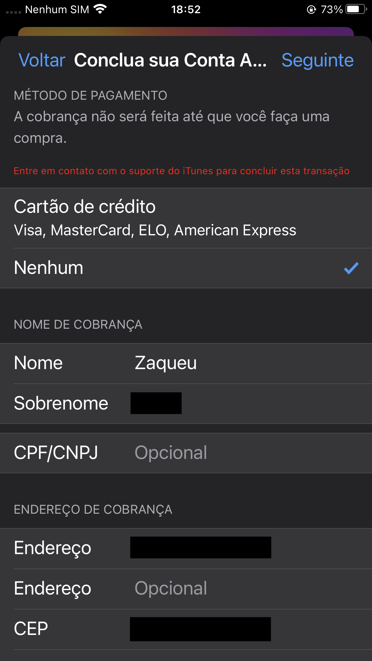 Fiz a conta tudo certinho, quando vou pra instalar não dar certo ficar pedindo pra entrar em contato com a iTunes e nada não consigo baixar absolutamente nada