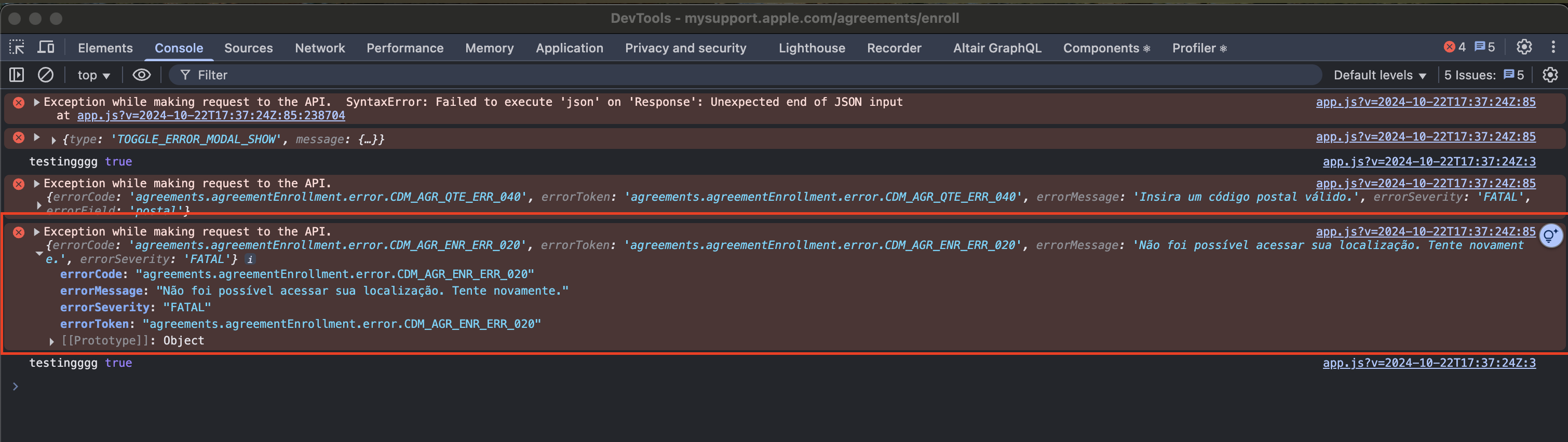 Tenho um MacBook Pro M4 e adquiri o AppleCare para ele. Mas não consigo registrar o AppleCare de nenhum browser devido ao seguinte erro: