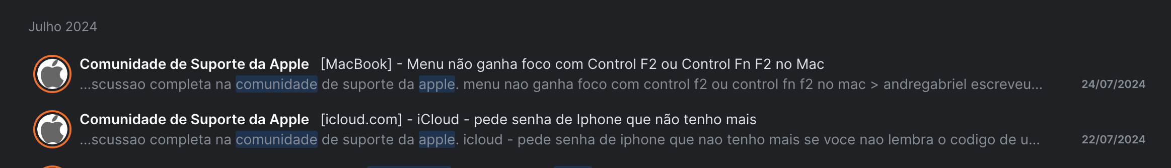 Este site apresenta conteúdos enviados por usuários, comentários e opiniões apenas para fins de informação. A Apple poderá fornecer ou recomendar respostas como uma solução possível com base nas informações fornecidas. Cada possível problema poderá envolver diversos fatores não especificados nas conversas capturadas em um fórum eletrônico; sendo assim, a Apple não pode garantir a eficácia de quaisquer soluções sugeridas nos fóruns da comunidade. A Apple isenta-se de toda e qualquer responsabilidade por atos, omissões e conduta de terceiros em conexão com o uso do site ou relacionados a ele. Todas as publicações e todo o uso de conteúdo do site estão sujeitas aos Termos de Uso da Comunidade de Suporte da Apple. Veja como os seus dados são gerenciados…