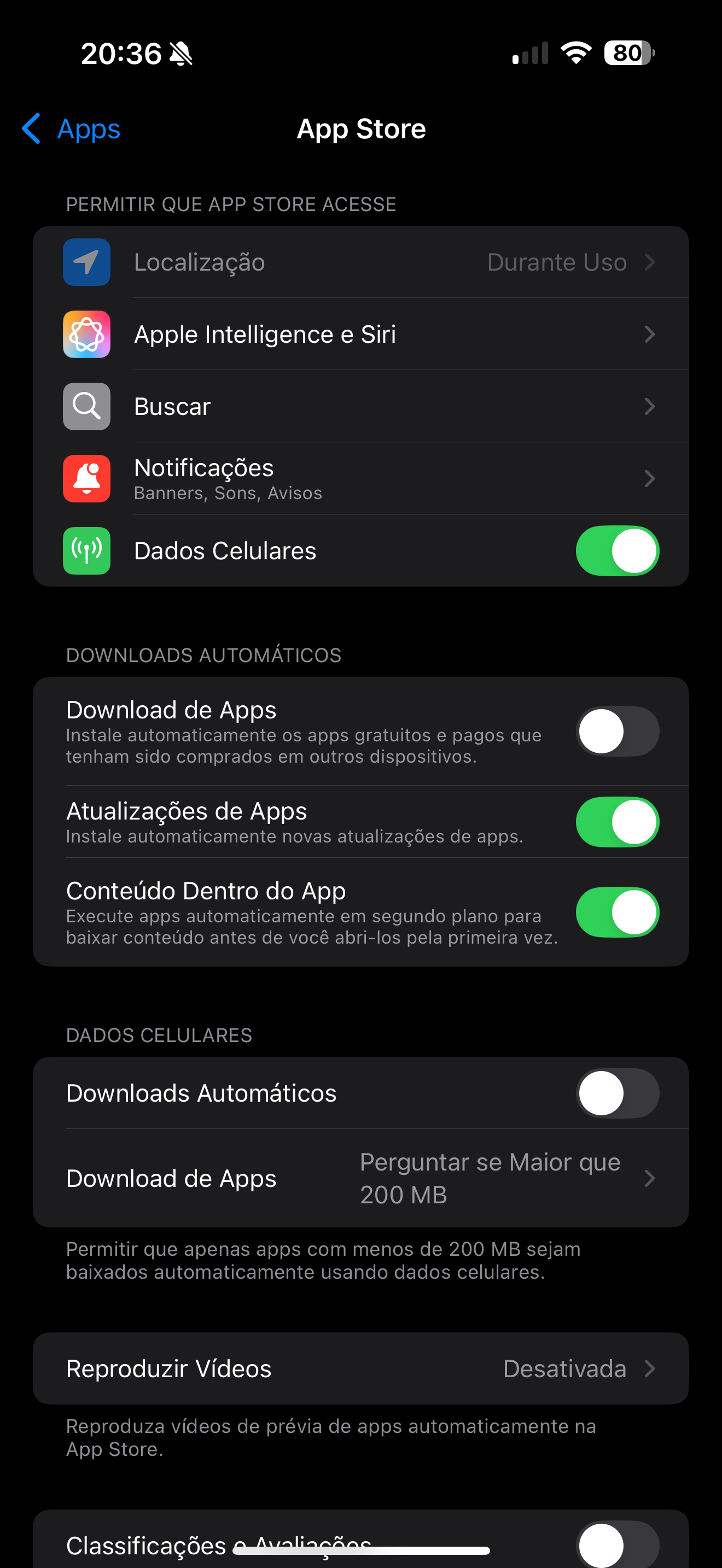 Olá, meus apps não atualizam sozinhos, mesmo estando com a opção marcada, já testei em diversas redes Wi-Fi, e nada, estou usando o iOS 18.5.