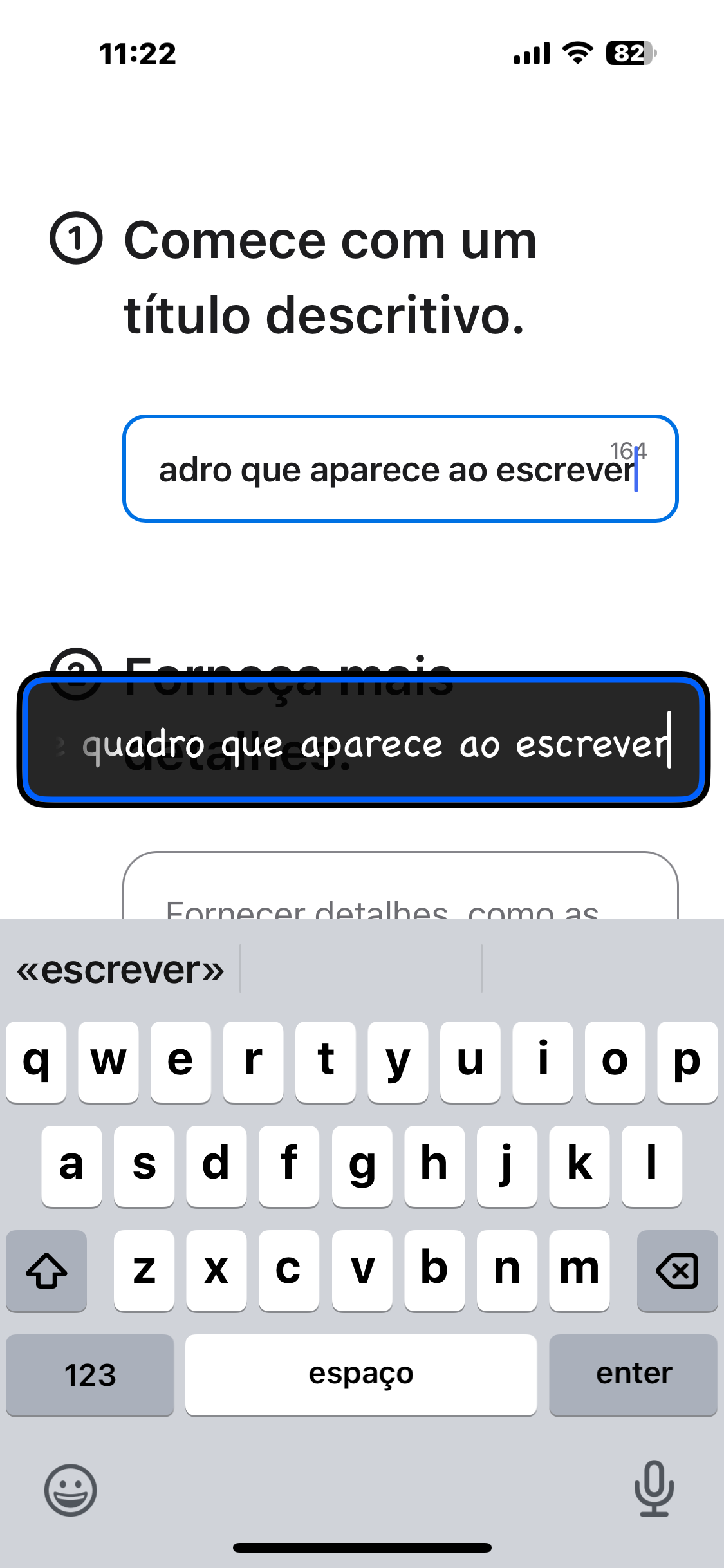 Bom dia ,tenho o 16 pro max e não sei como retirar este quadro que aparece ao escrever