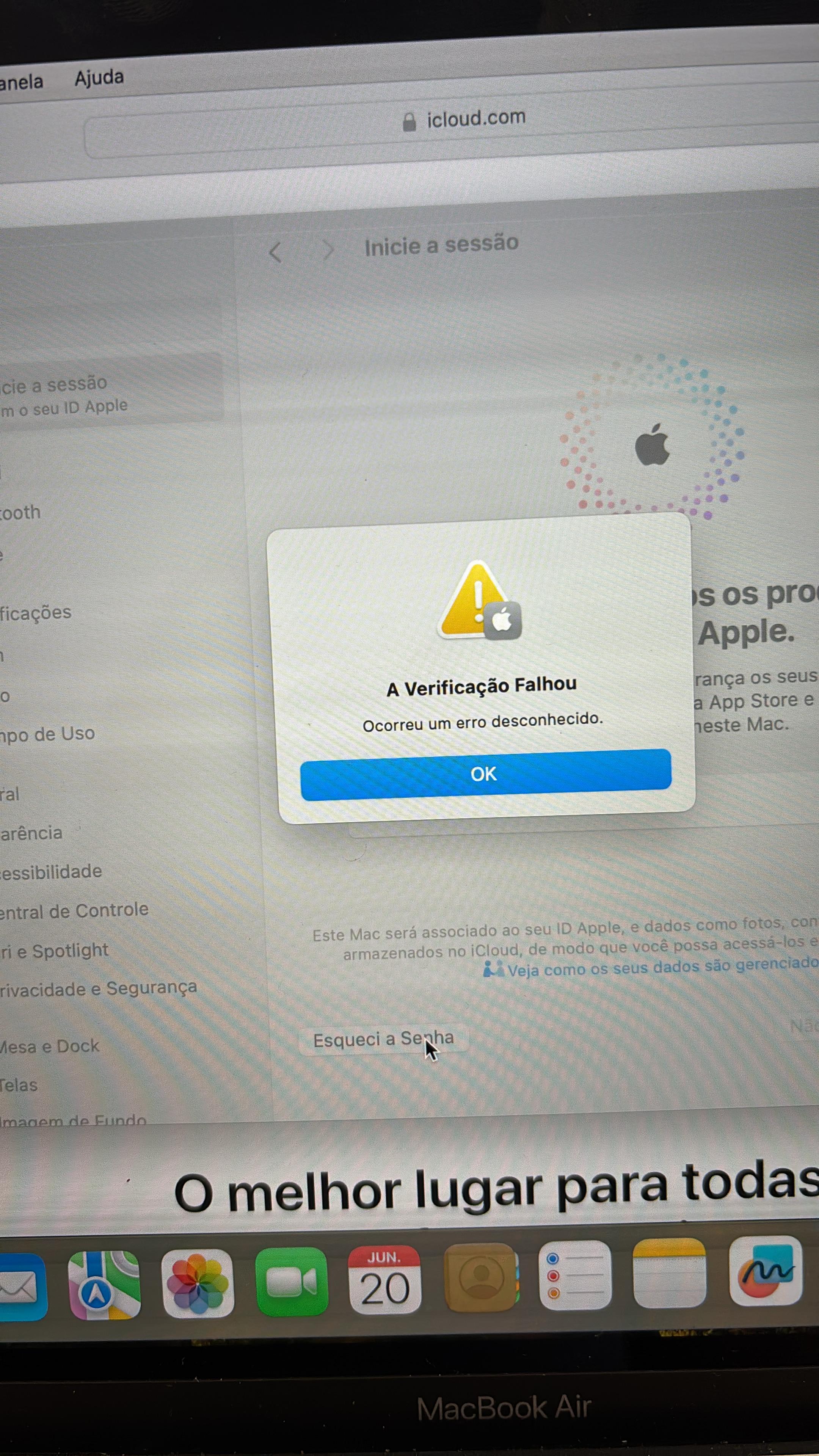 Que situação chata com seu MacBook Air! É super frustrante quando a gente não consegue usar nosso próprio iCloud depois de uma compra, ainda mais com um erro tão vago. Quando você tenta logar, criar uma conta ou resetar a senha e só aparece "erro desconhecido", isso pode indicar que o MacBook está tendo dificuldade para se comunicar com os servidores da Apple, talvez por causa de alguma configuração remanescente do antigo dono, um problema de conexão à internet, ou até algo mais profundo no software. Uma boa ideia seria tentar se conectar a uma rede Wi-Fi diferente ou verificar se a data e hora do MacBook estão certas e automáticas. Se nada disso funcionar, uma instalação limpa do macOS pela internet (usando Option + Command + R na inicialização) ou até mesmo tentar um processo de restauração mais profundo como o modo DFU (se você tiver acesso a outro Mac) poderiam resolver. Mas se mesmo assim o problema persistir, o mais garantido é falar com a Apple aqui no Brasil, eles têm as ferramentas para investigar a fundo e te ajudar.