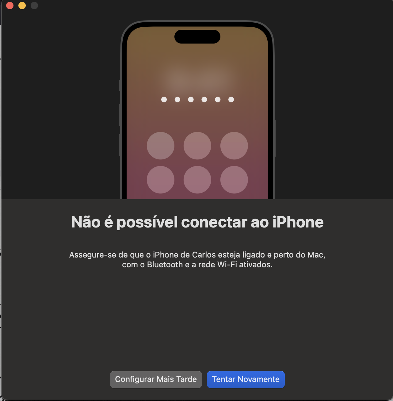 Se o Espelhamento do iPhone não encontrar seu iPhone ou não se conectar a ele ou se a conexão for interrompida ou exceder o tempo limite, siga as instruções exibidas na janela Espelhamento do iPhone. Se necessário, tente estas etapas adicionais.
