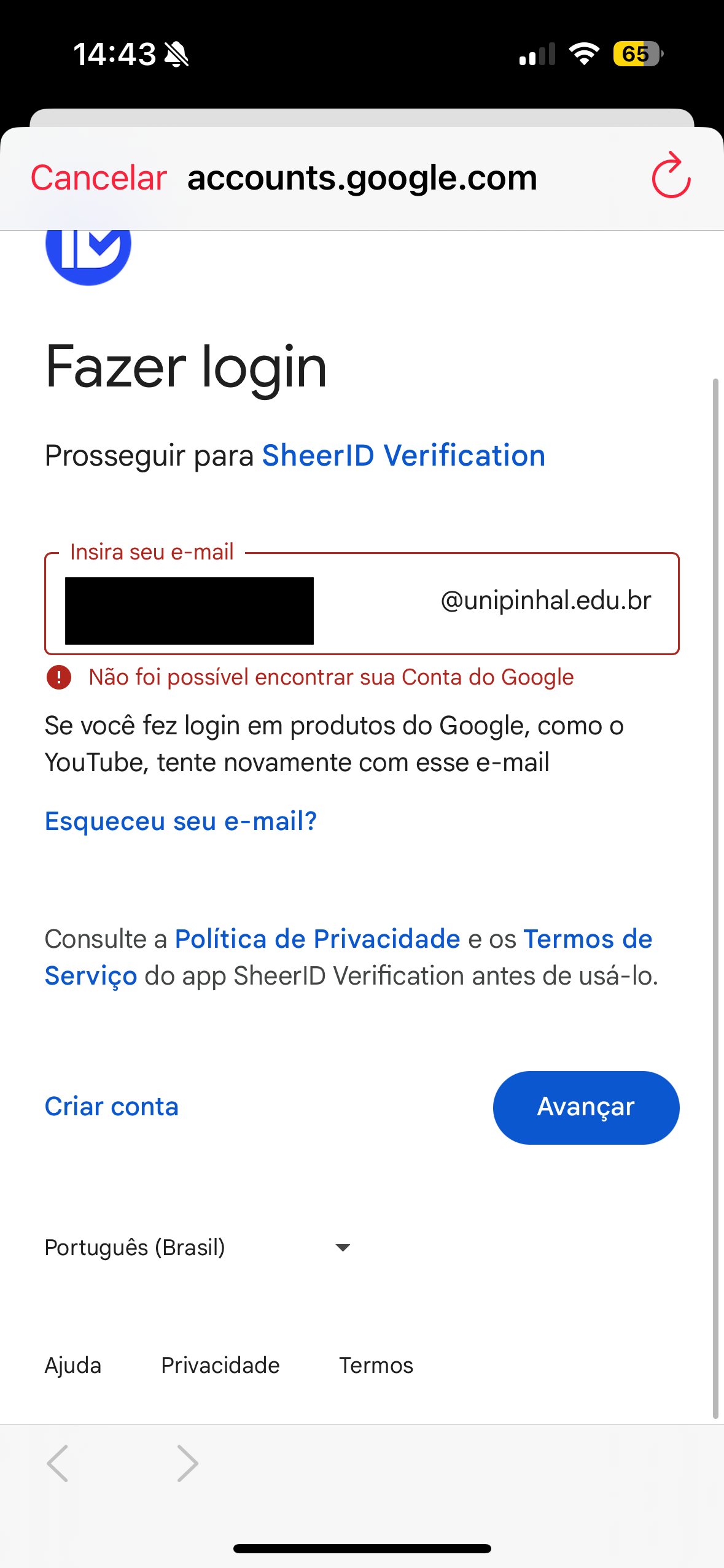 Olá tudo bem ao tentar realizar o cadastramento do Apple Music para estudantes ele já traz no final do e-mail: @unipinhal.edu.br porém o meu e-mail de estudantes antes da uniPinhal tem estudante.UniPinhal.Edu.br, sendo assim como podemos prosseguir?