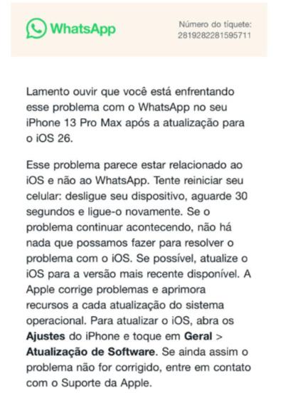 - Persistência: O erro não foi corrigido com a atualização subsequente para o iOS 26.0.1.