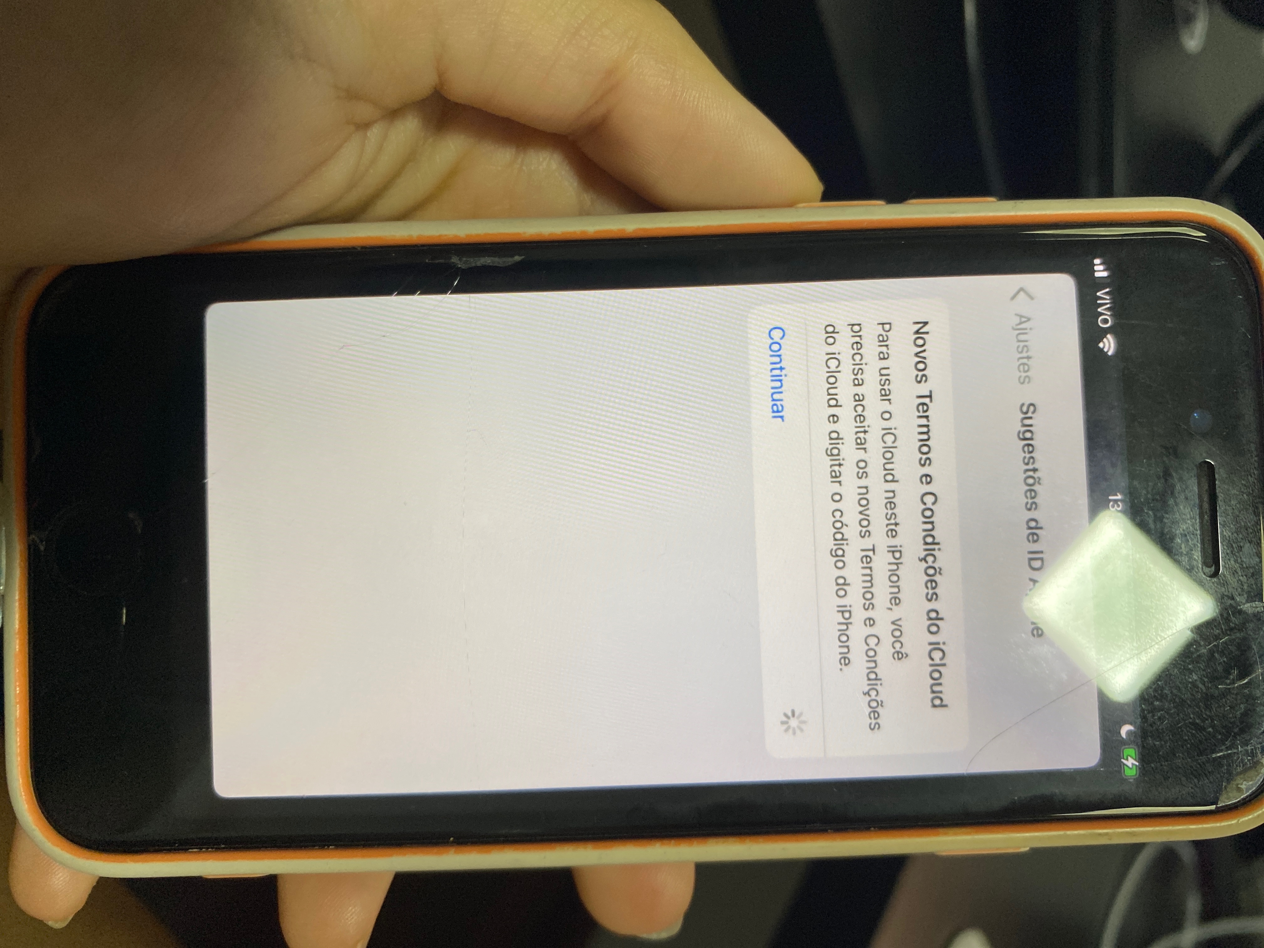 Em Ajustes > Sugestoes de ID Apple, aparece “Novos Termos e Condições do iCloud”, quando clico em “Continuar” fica num loading infinito e não aparece nada. Tentei entrar pelo icloud e appleid no PC, pra ver se aparecia pra aceitar, mas não apareceu nada. Preciso aceitar esses termos pra conseguir transferir os dados do Iphone 7 pro outro iphone 8 plus que tenho.