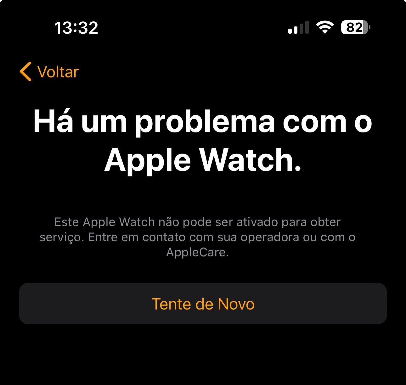 ele está fora da garantia, atualizei o telefone e o relógio também, e o erro persiste.