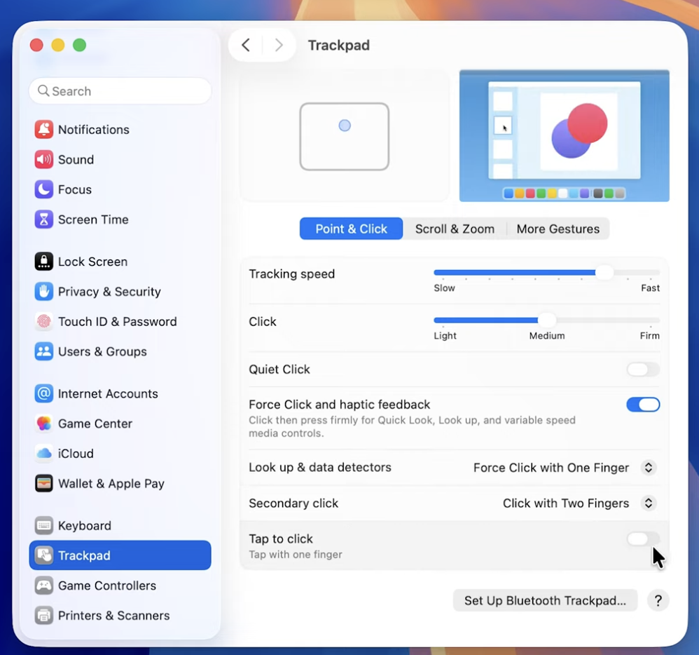 Estou usando o Tahoe 26.1 em um MacBook Air M1 e gostaria de configurar o mouse para tocar e executar aplicações e abrir menus ao invés de ter que clicar no mouse. Isso era possível nas versões anteriores tanto no trackpad e no Magic Mouse.