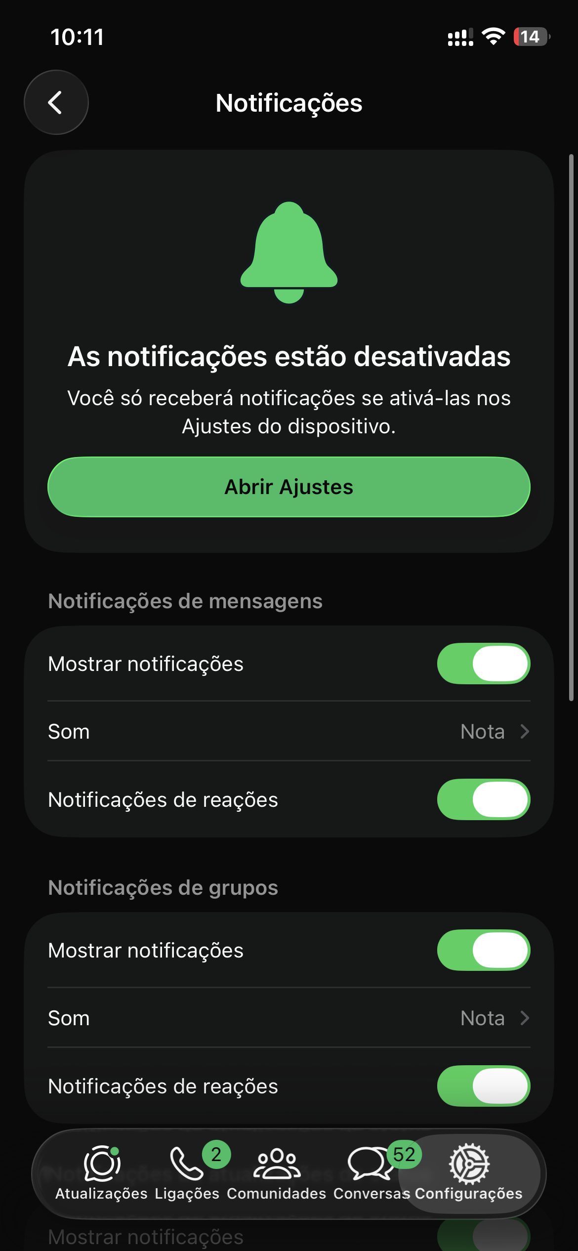 Título Original: Não estou recebendo notificação o meu WhatsApp, já fiz todo o processo e diz que ele não está instalado e nem aparece no ajustes