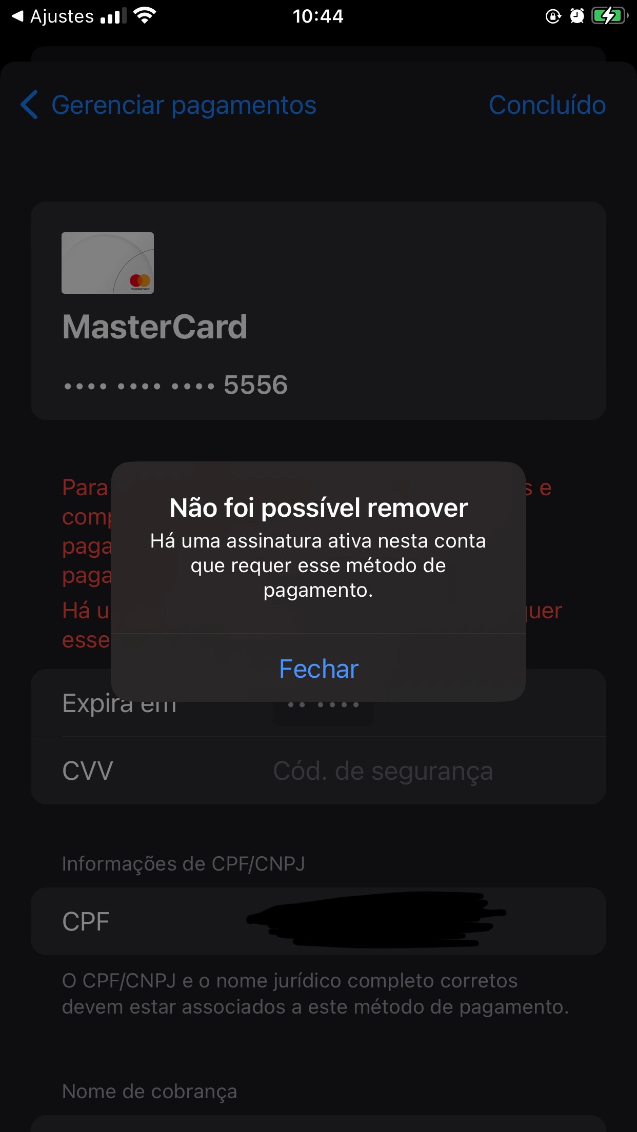 Olá, tenho um iPhone 8 Plus, fiz duas assinaturas através da Apple, porém fiz a burrice de emprestar o meu cartão de crédito, para um familiar que acabou sujando o meu nome… e agora não consigo retirar o meu cartão pois fala que tem uma assinatura ativa, mesmo não tendo mais a opção crédito no cartão…