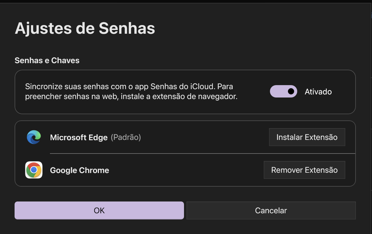 Quando você configurar Senhas do iCloud no iCloud para Windows, poderá acessar senhas armazenadas em Chaves do iCloud no Google Chrome, Microsoft Edge ou Firefox.