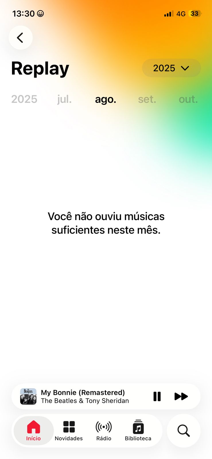 Para que o Replay funcione corretamente, o Apple Music precisa ter permissão para registrar o que você ouve.