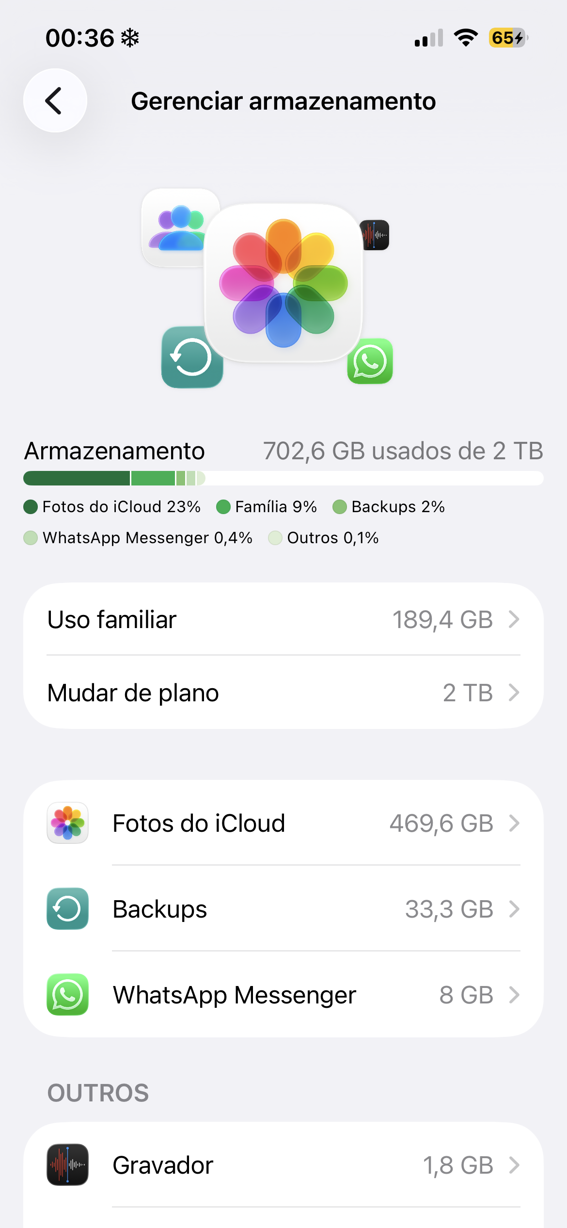 Meu iPhone 13 (ultima versão do software; 128GB interno), está acusando armazenamento cheio, mas eu tenho memória estendida que pago mensal de 2T , qual o motivo de ainda acusar armazenamento cheio se eu tenho memória, a mesma coisa com meu marido (iPhone 14), ele esta no meu grupo familiar usando a memória de 2T e aparece a mesma coisa, complicado isso, passo por isso não é de hoje, o erro persiste, gostaria de uma solução