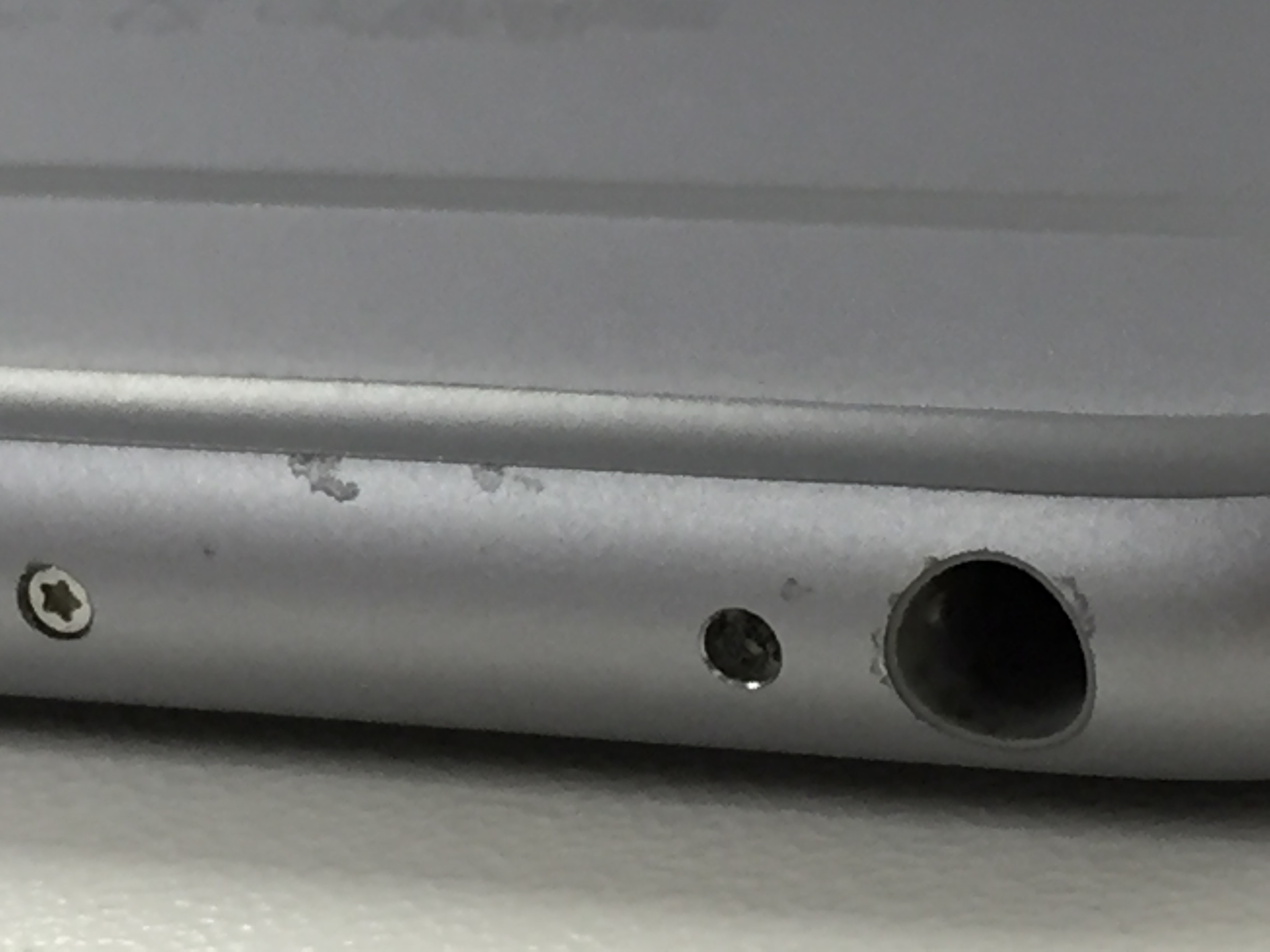 Eram manchas apenas na peça de alumínio de baixo, onde estão a entrada de fone, auto-falante e a entrada lightning.