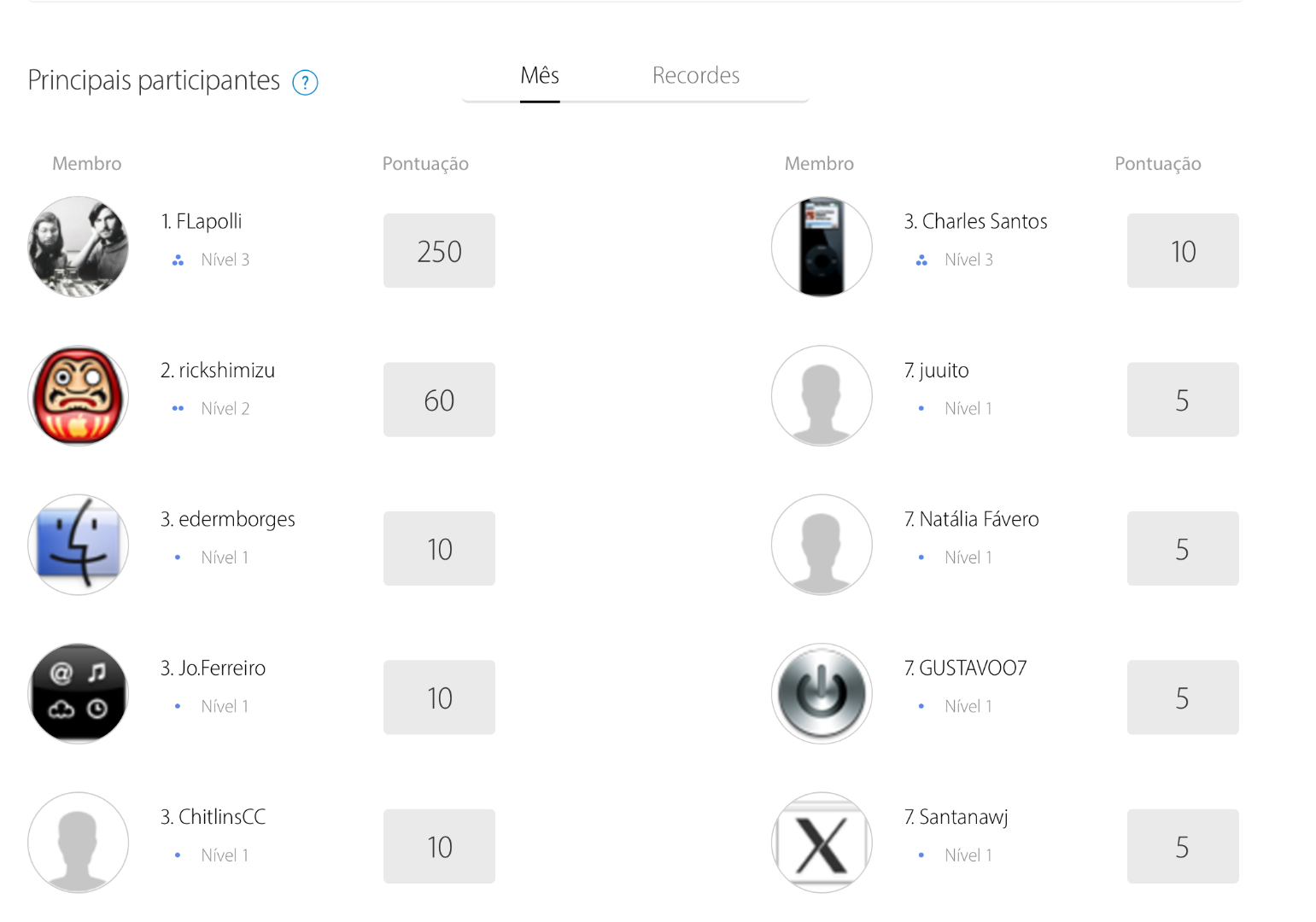 Após as mudanças no layout das Comunidades de Suporte da Apple, os rankings sumiram. Alguém sabe se eles foram desativados ou se eles irão retornar?